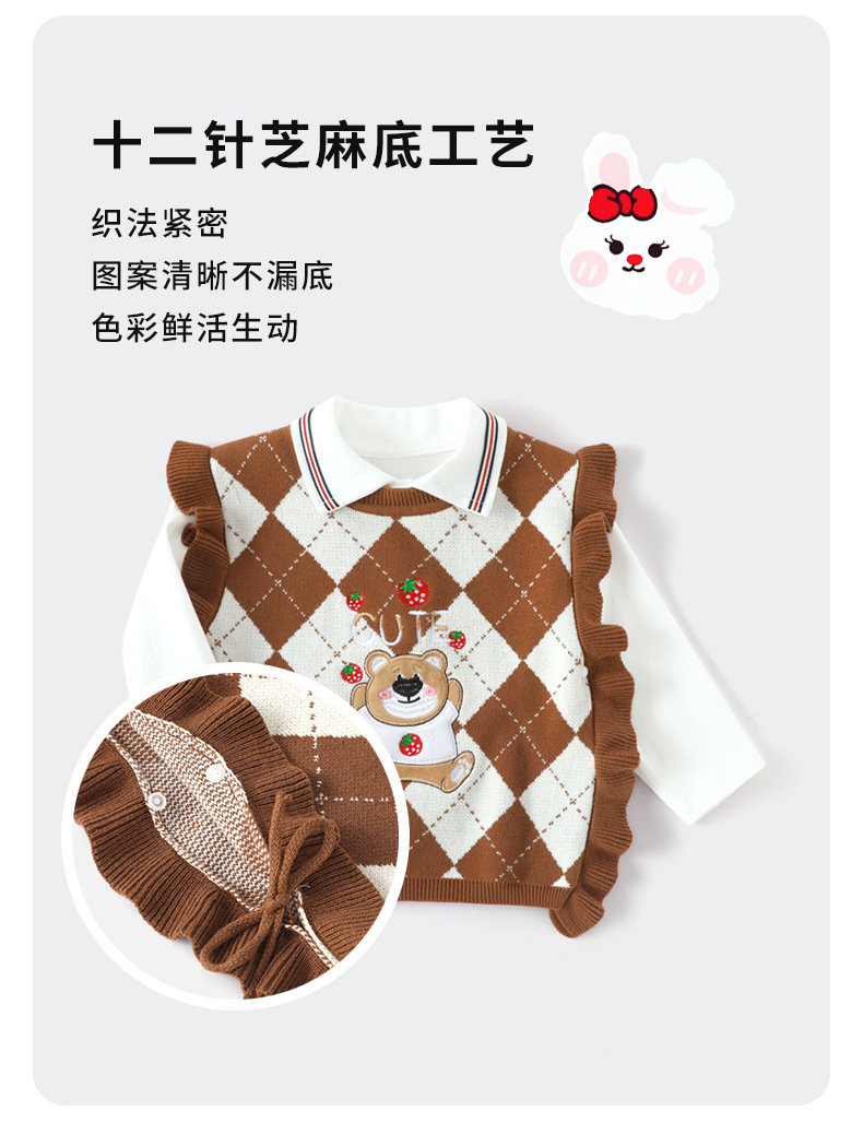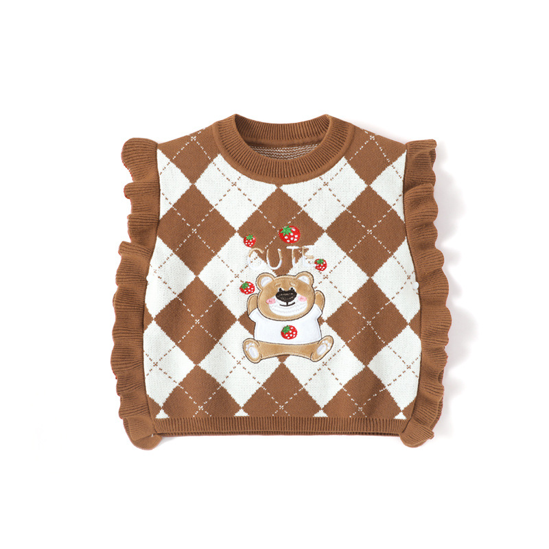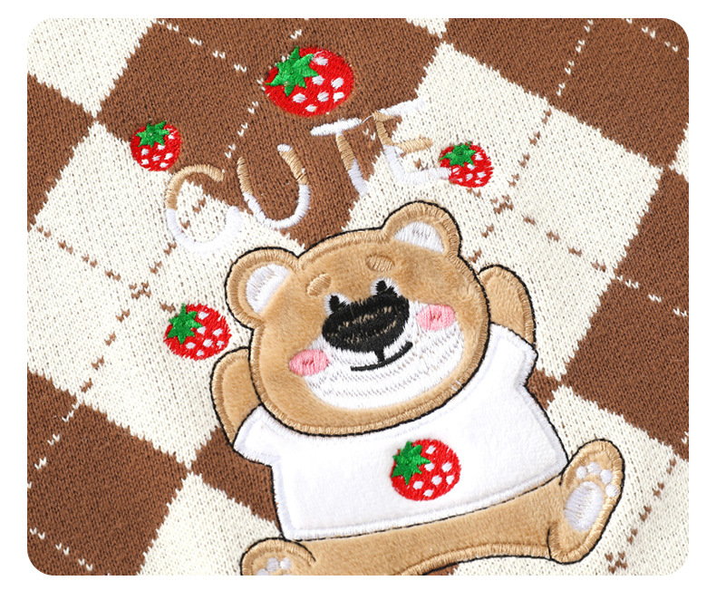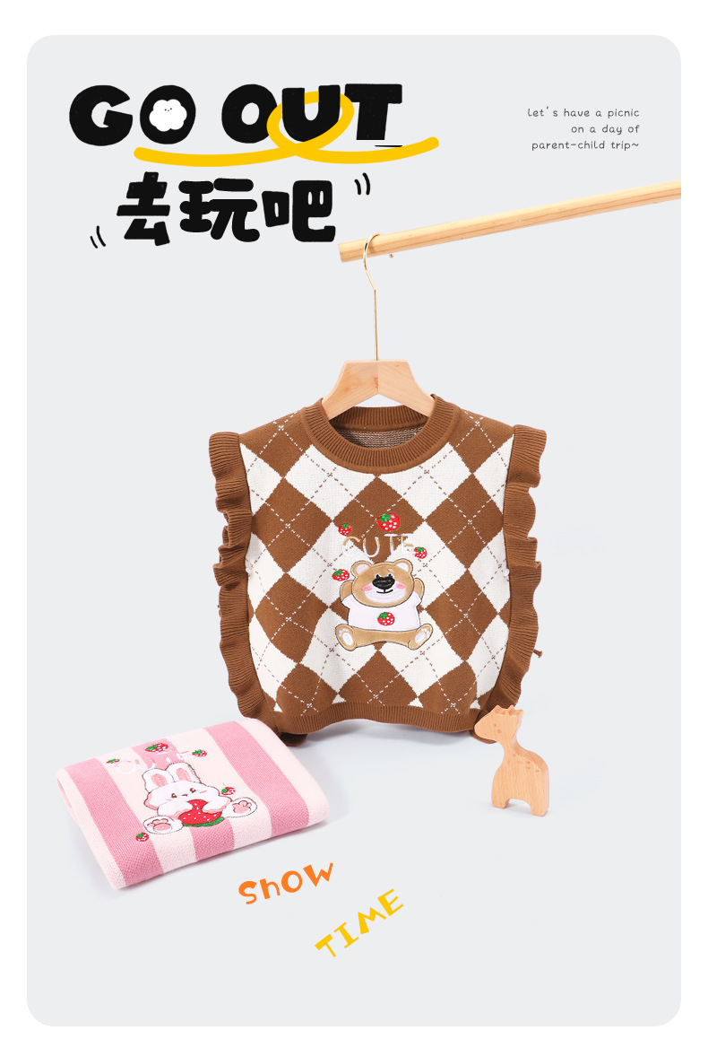 Ku Wa Mi Girl 딸기 곰 고리 조끼 이른 봄 소녀의 새로운 달콤한 토끼 격자 무늬 클래스 A 조끼스토어 가기