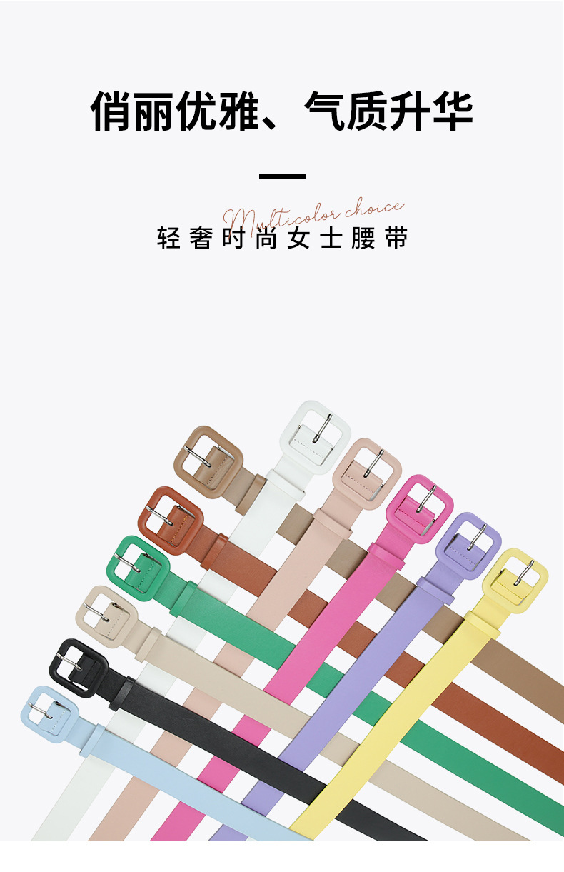 새로운 패션 한국 여성의 벨트 스퀘어 버클 캔디 컬러 세련된 스타일 심플 모든 매치 청바지 원피스 벨트