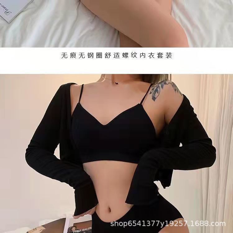 2023 새로운 스타일 끈이없는 작은 조끼 여자의 여름 섹시한 스파이스 소녀 가슴 포장 속옷 세트 안티 러닝 빛 조절 가능한 단색스토어 가기