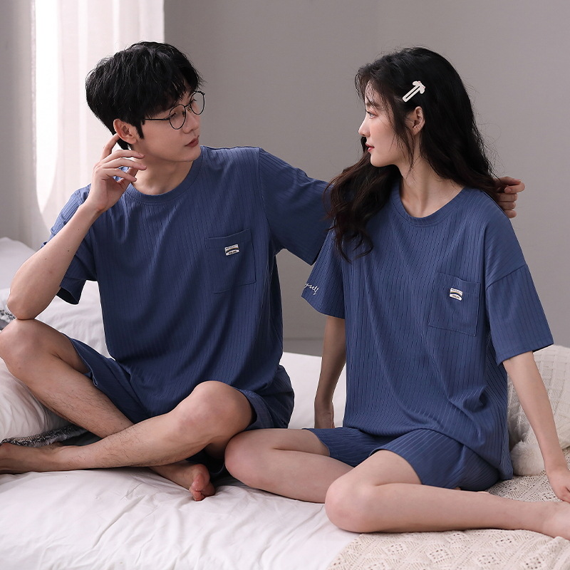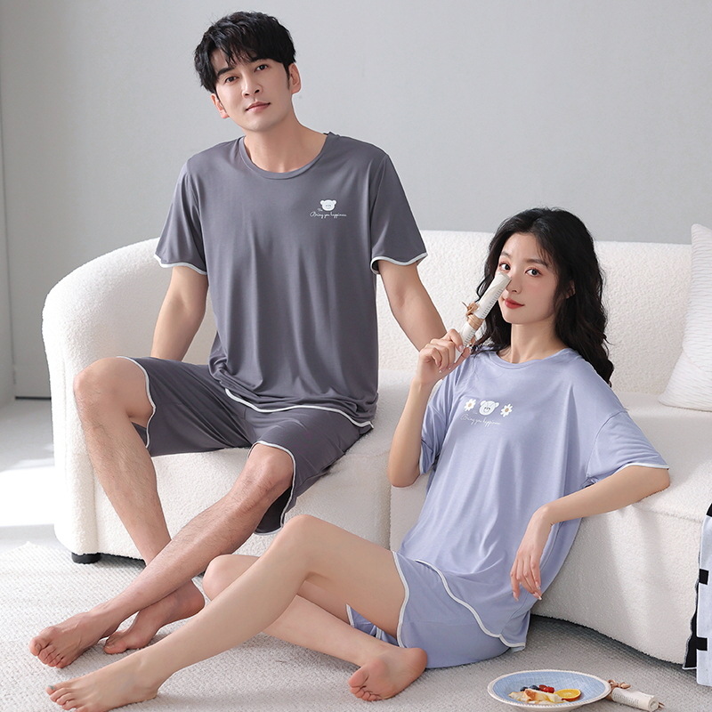 여름 모달 커플 잠옷 여자의 반팔 반바지 탄성 멋진 남자의 커플 가정복 세트 한국 스타일 유행스토어 가기