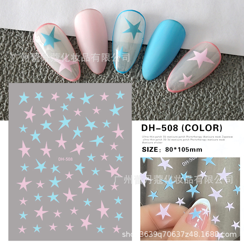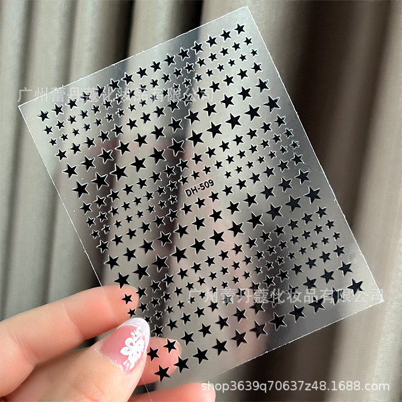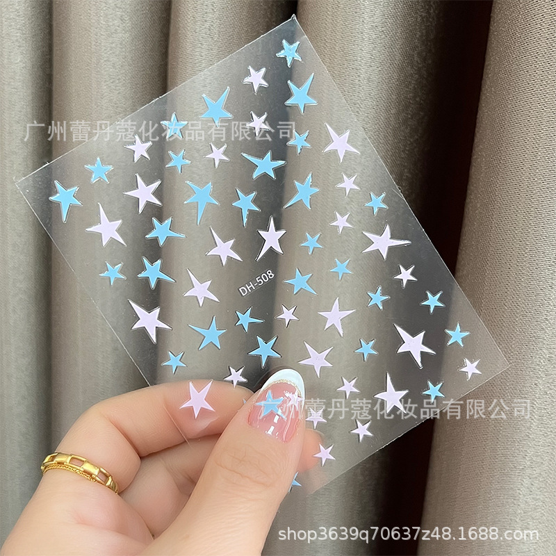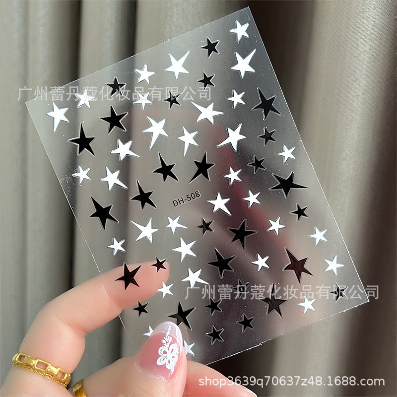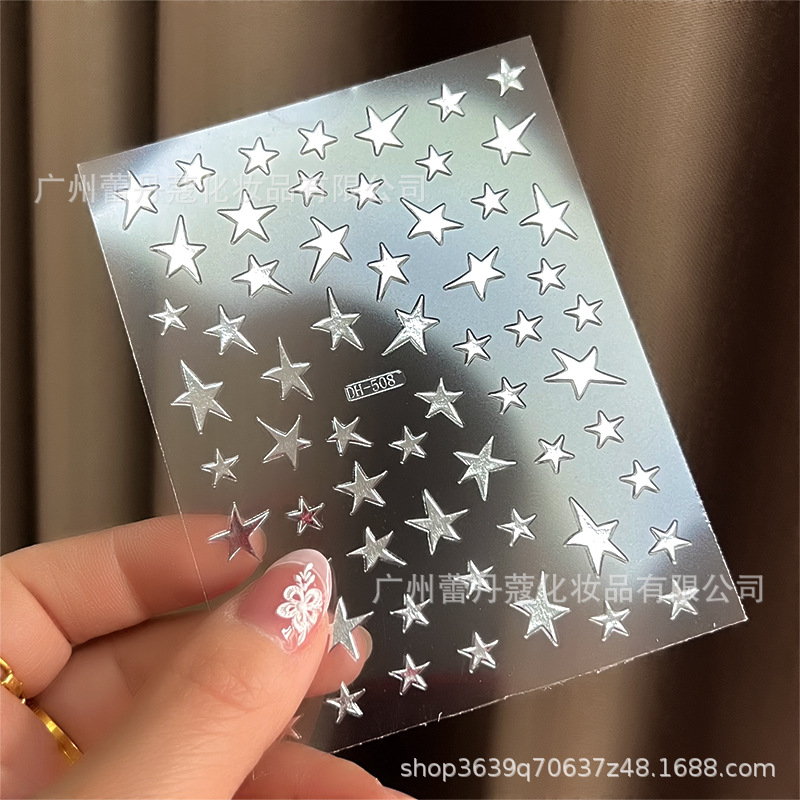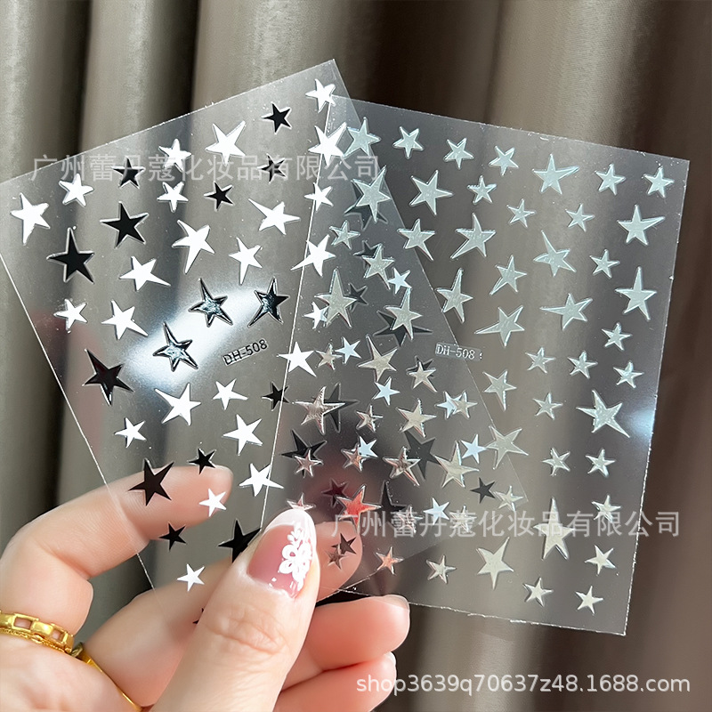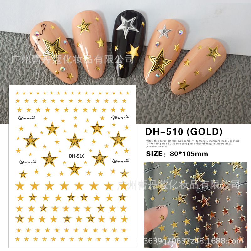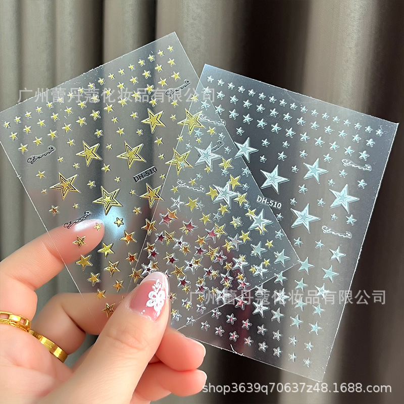 폭발 일본 네일 아트 스티커 스타 망스 핫 골드 실버 얇은 터프 중공 스타 손으로 그린 다섯개 별 접착 네일 데칼