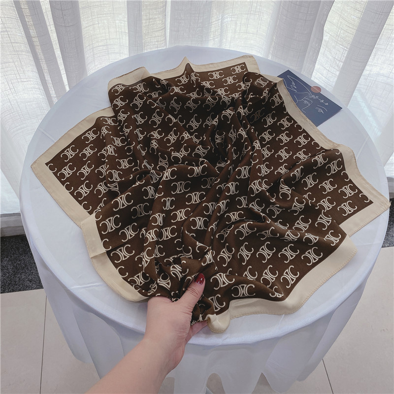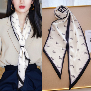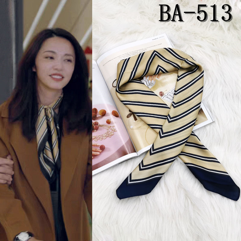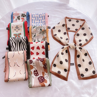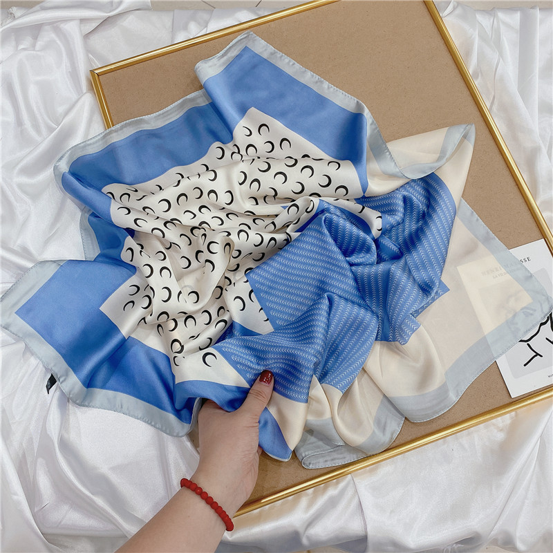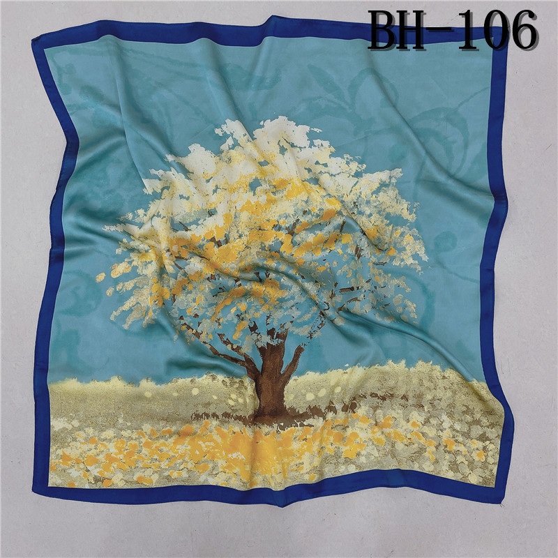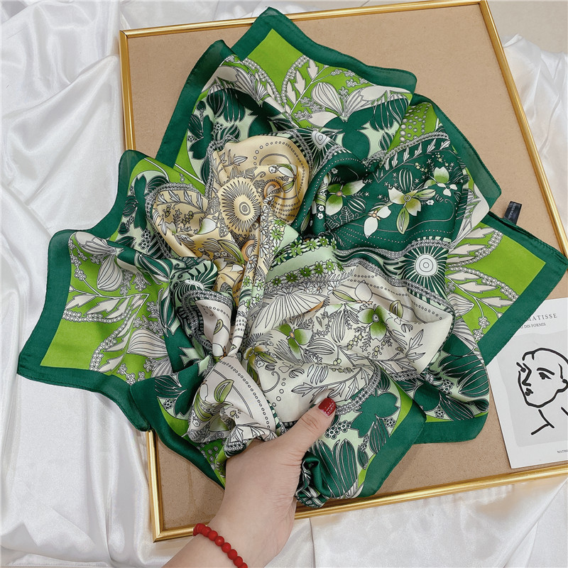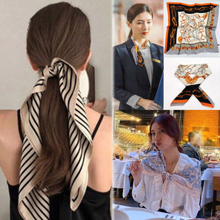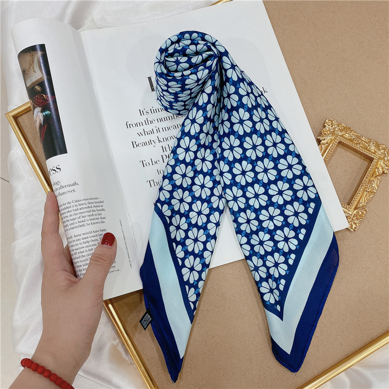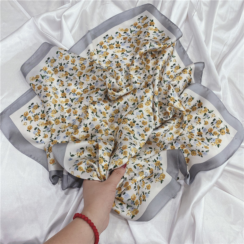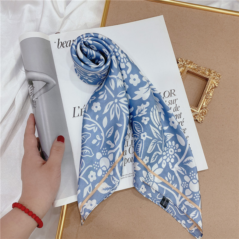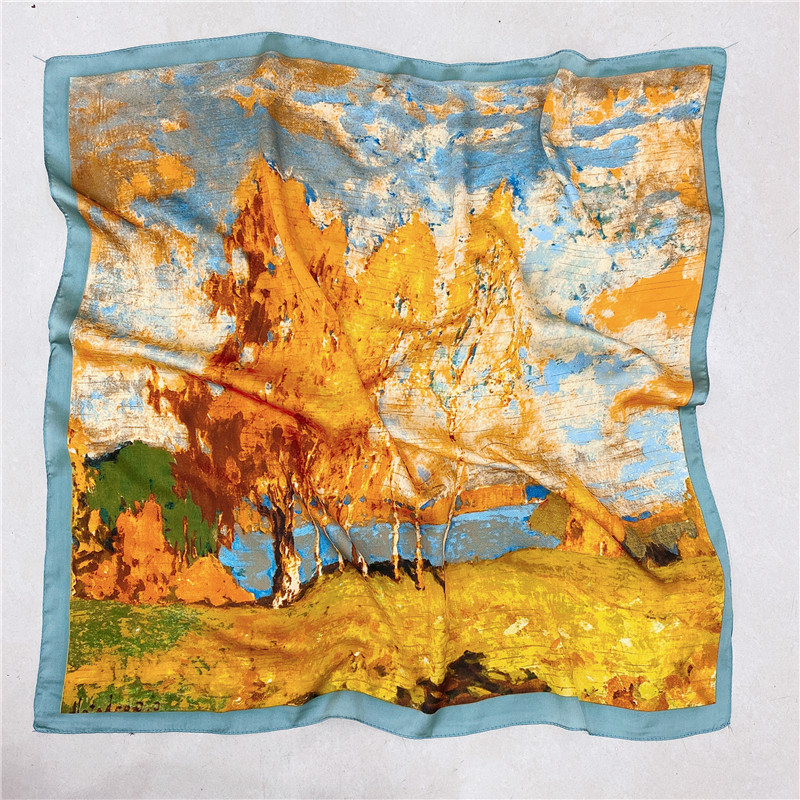 실크 스카프 여성의 세트 모조 실크 작은 사각형 스카프 유화 인쇄 스카프 모든 일치 봄과 가을 비즈니스 착용 장식 스카프스토어 가기