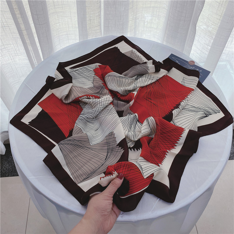 실크 스카프 여성의 세트 모조 실크 작은 사각형 스카프 유화 인쇄 스카프 모든 일치 봄과 가을 비즈니스 착용 장식 스카프