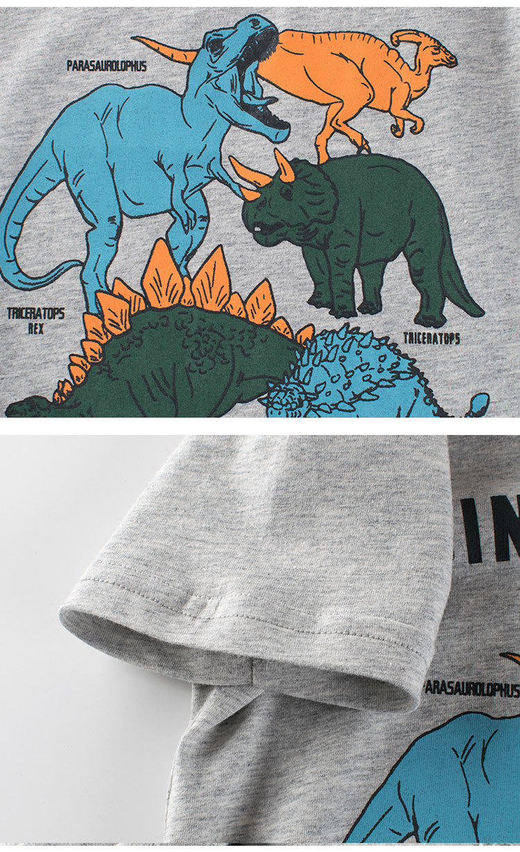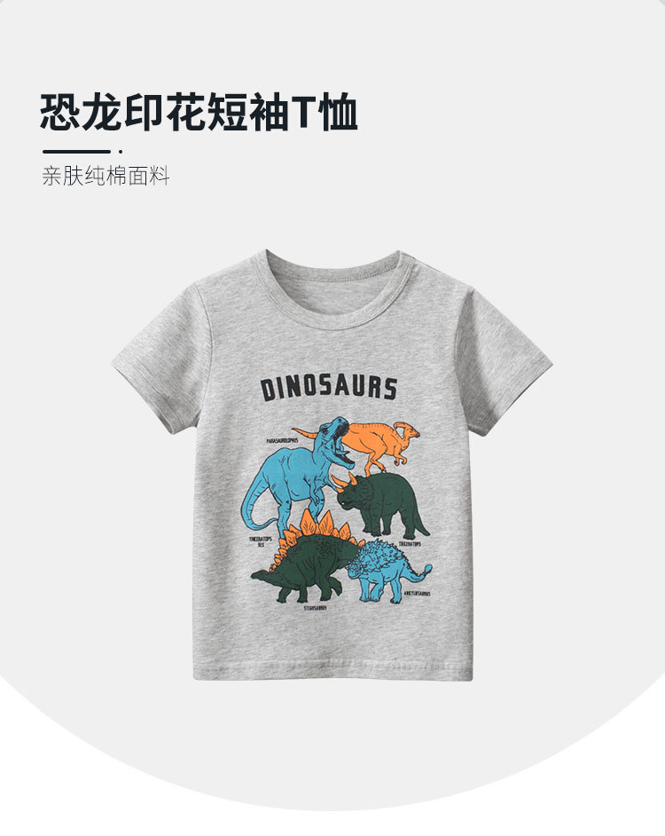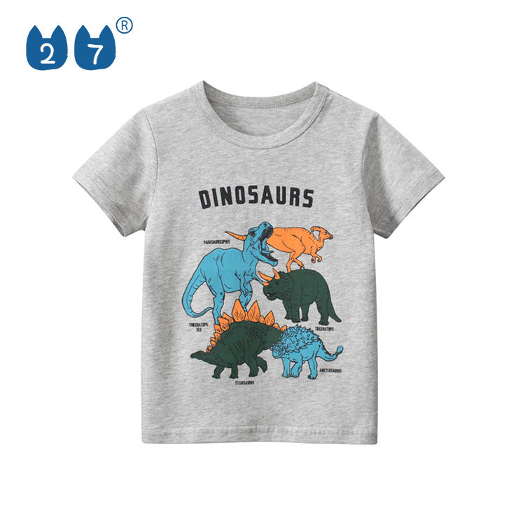 27 키즈 한국 아동복 여름 2023 새로운 소년 만화 반팔 티셔츠 공룡 반 소매 라이브 공급