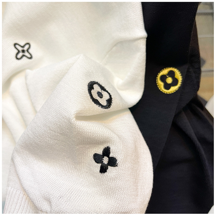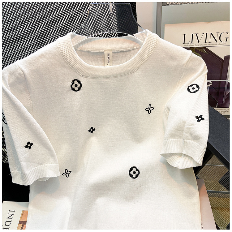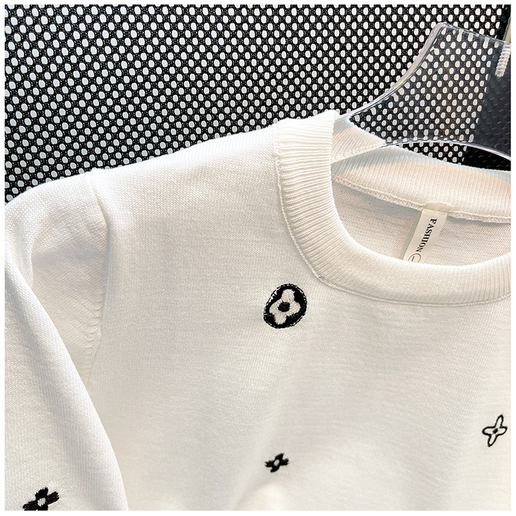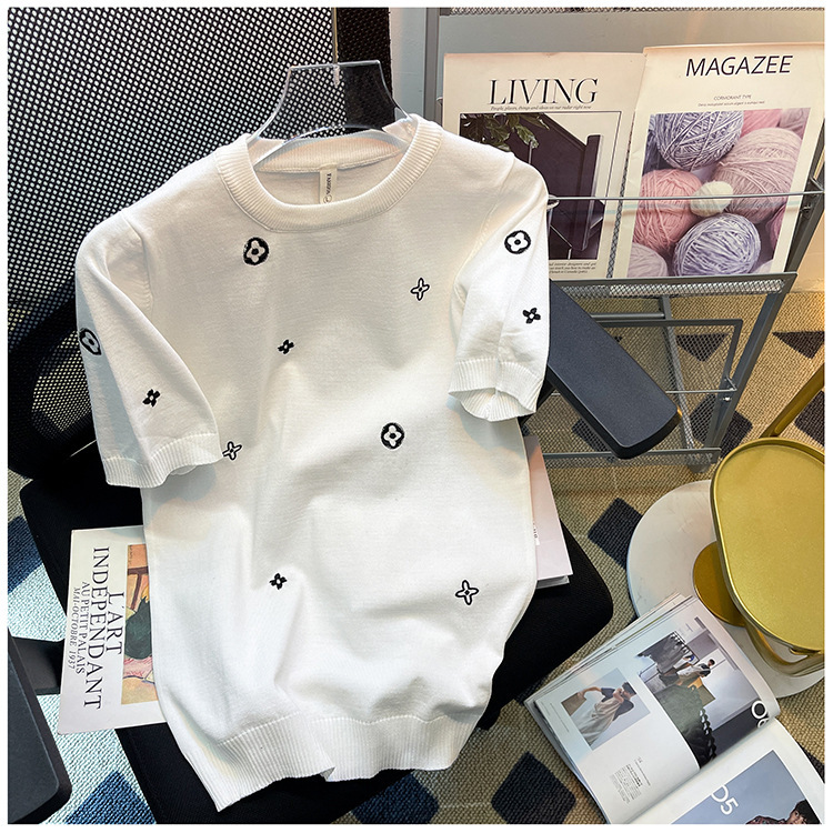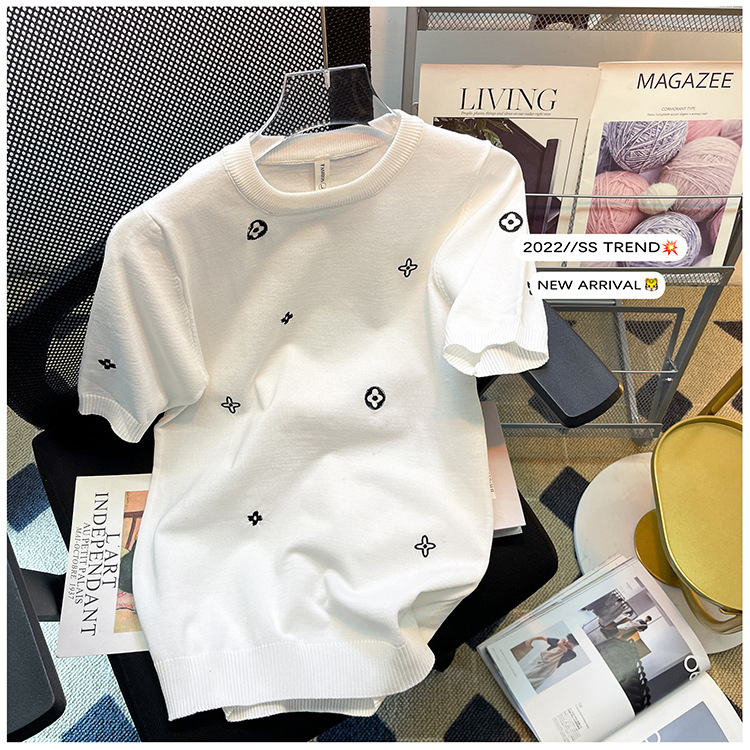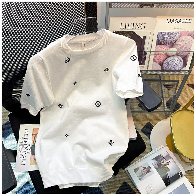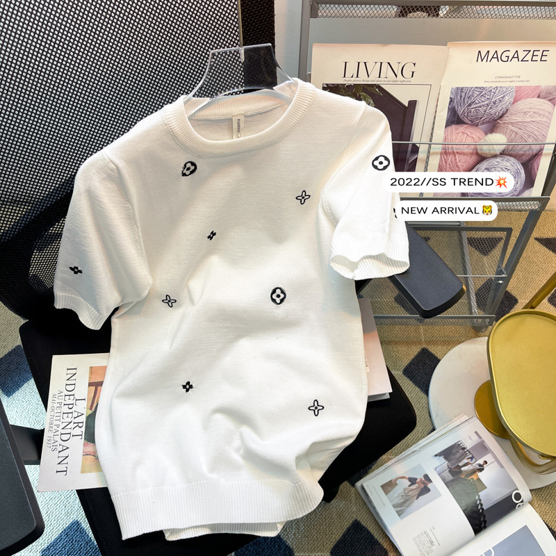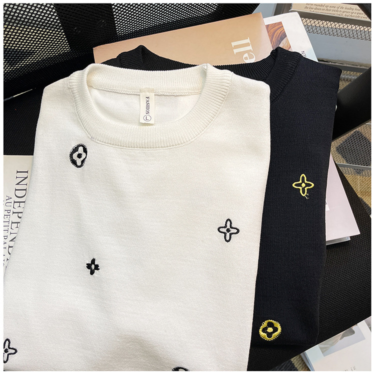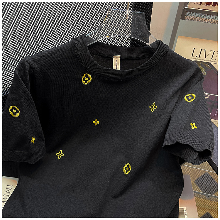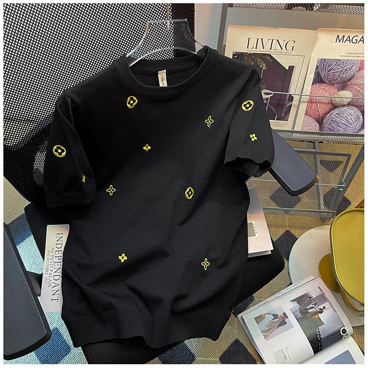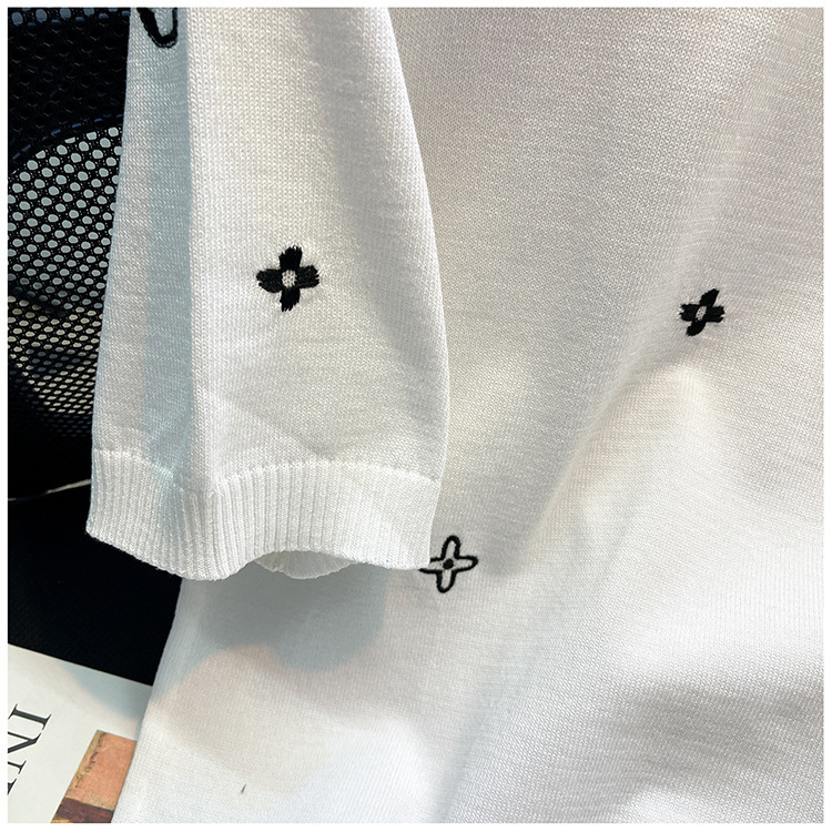 자수 반팔 스웨터 남성용 반팔 바닥 스웨터 여름 한국식 유행 슬림핏 티셔츠 캐주얼 탑 의류스토어 가기