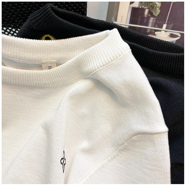 자수 반팔 스웨터 남성용 반팔 바닥 스웨터 여름 한국식 유행 슬림핏 티셔츠 캐주얼 탑 의류