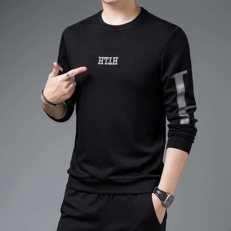 새로운 봄 남성 편지 인쇄 긴 소매 티셔츠 남성용 라운드 넥 스웨터 남성용 티셔츠