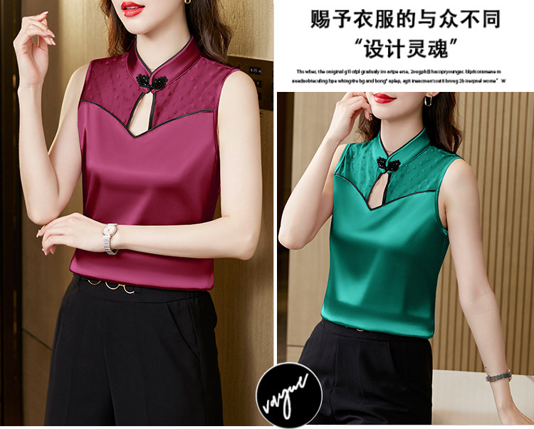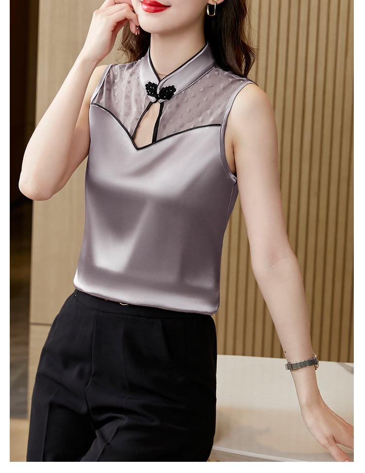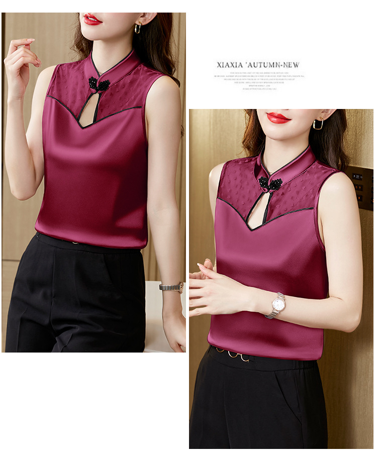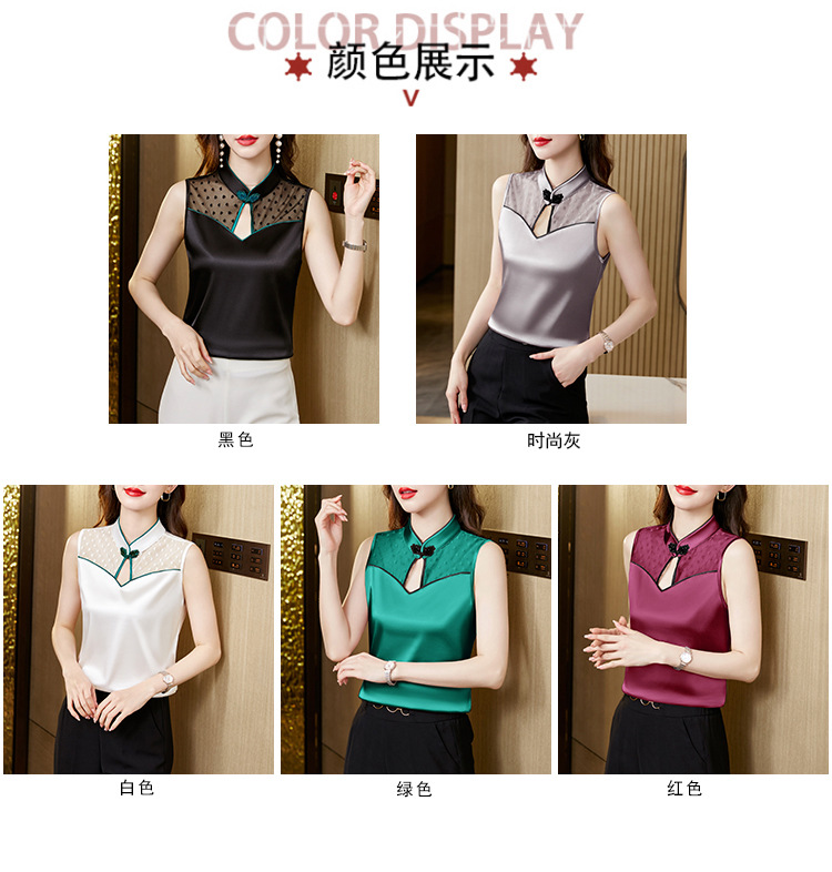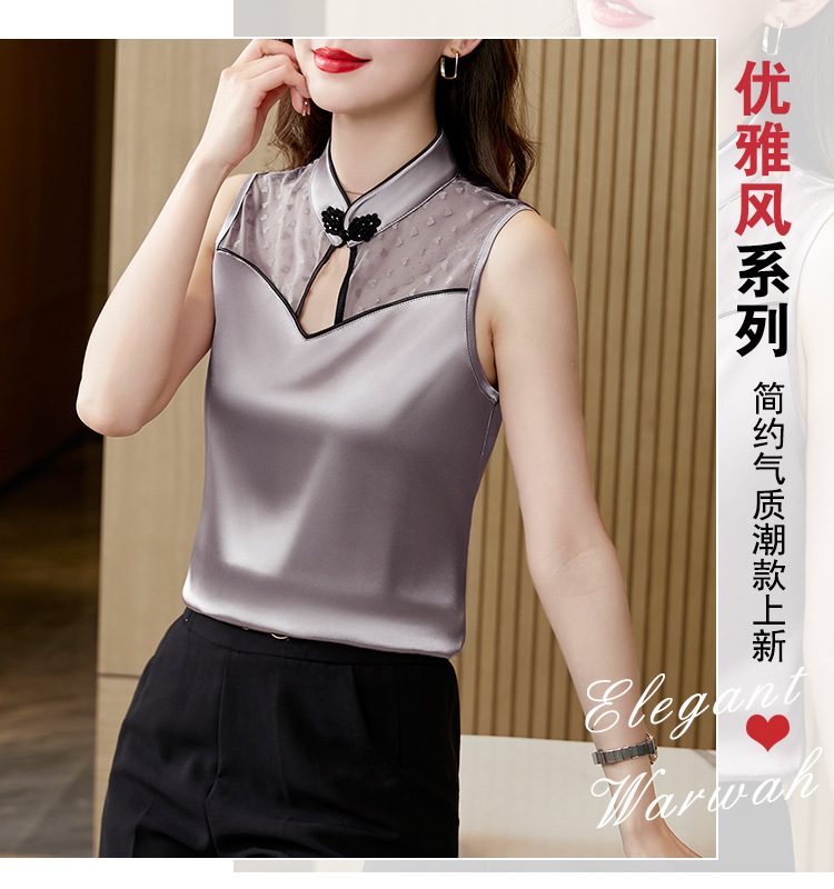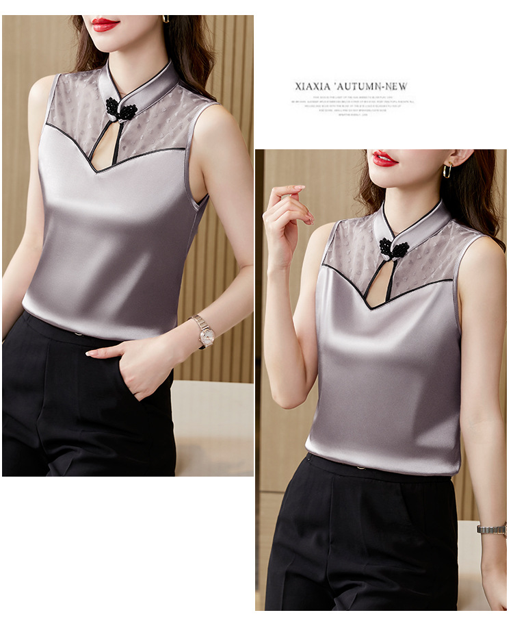 레트로 버클 기질 조커 새틴 컬러 매칭 아우터 베이스 셔츠 중공 조끼 도매 2023 한국판스토어 가기