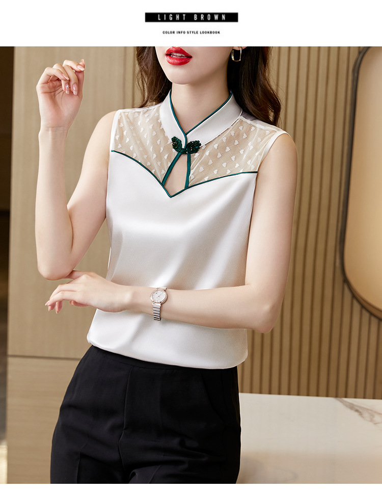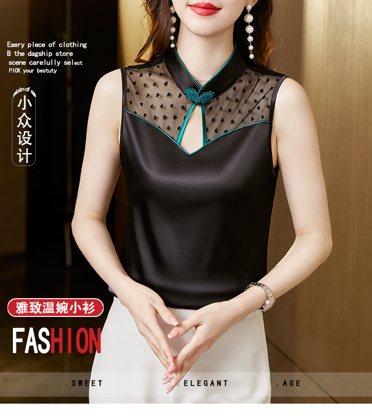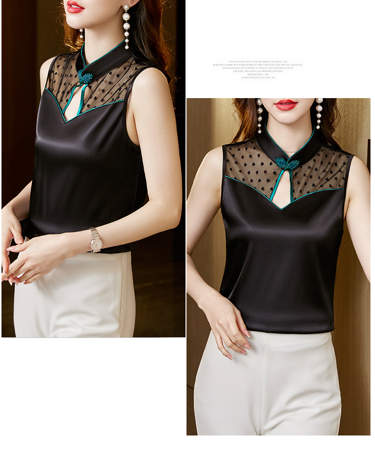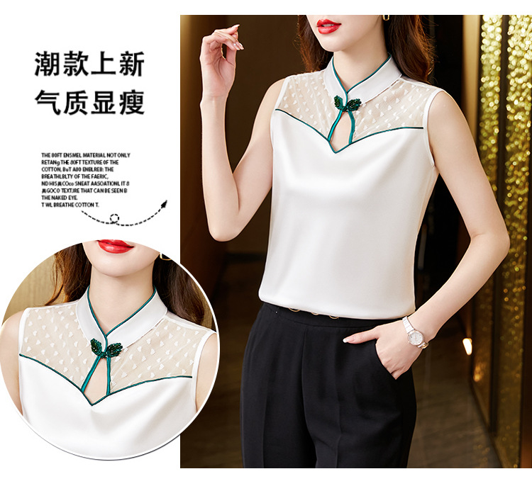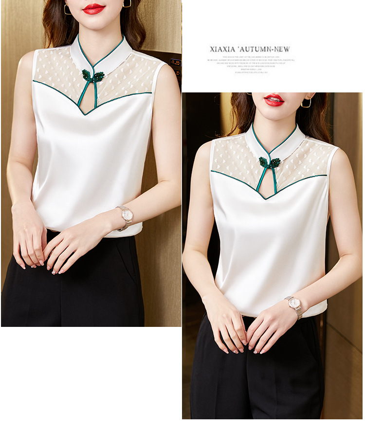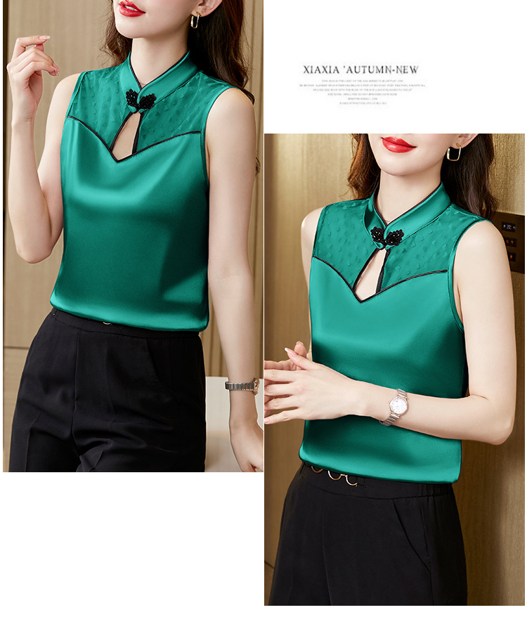 레트로 버클 기질 조커 새틴 컬러 매칭 아우터 베이스 셔츠 중공 조끼 도매 2023 한국판스토어 가기