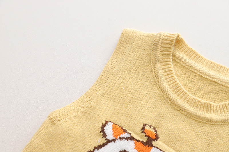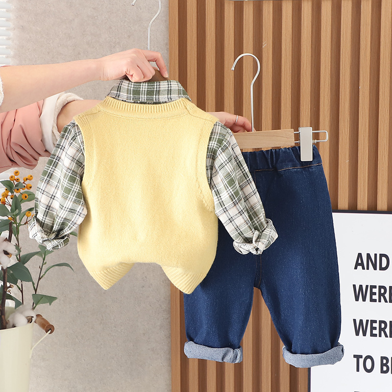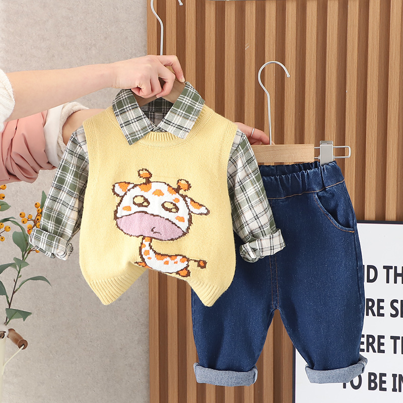 2023 봄과 가을 새로운 어린이 봄 기린 스웨터 3 피스 아기 캐주얼 조끼 세트