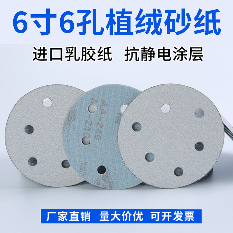흰색 사포 6 인치 6 홀 몰입 사포 건조 분쇄 자체 접착 먼지 수집 모래 닦은 종이 페인트 목공