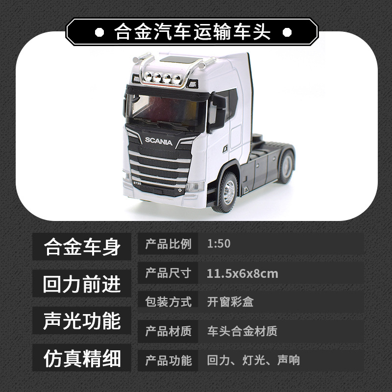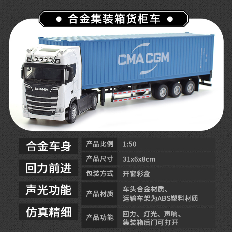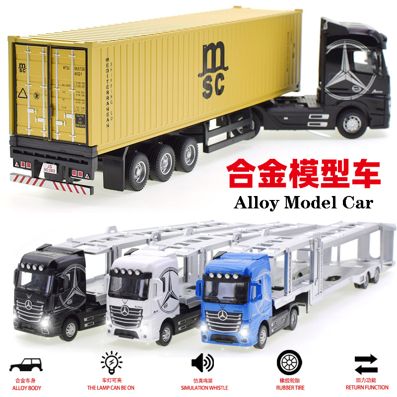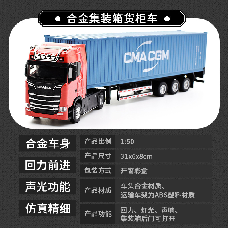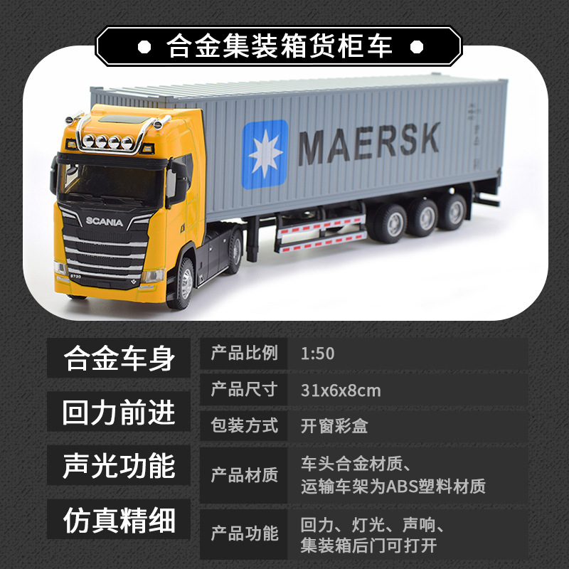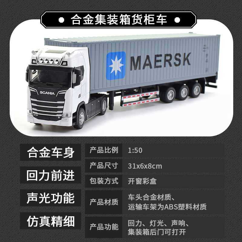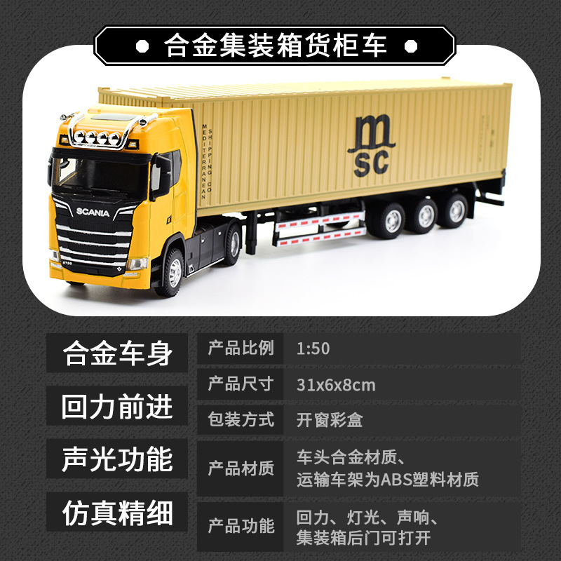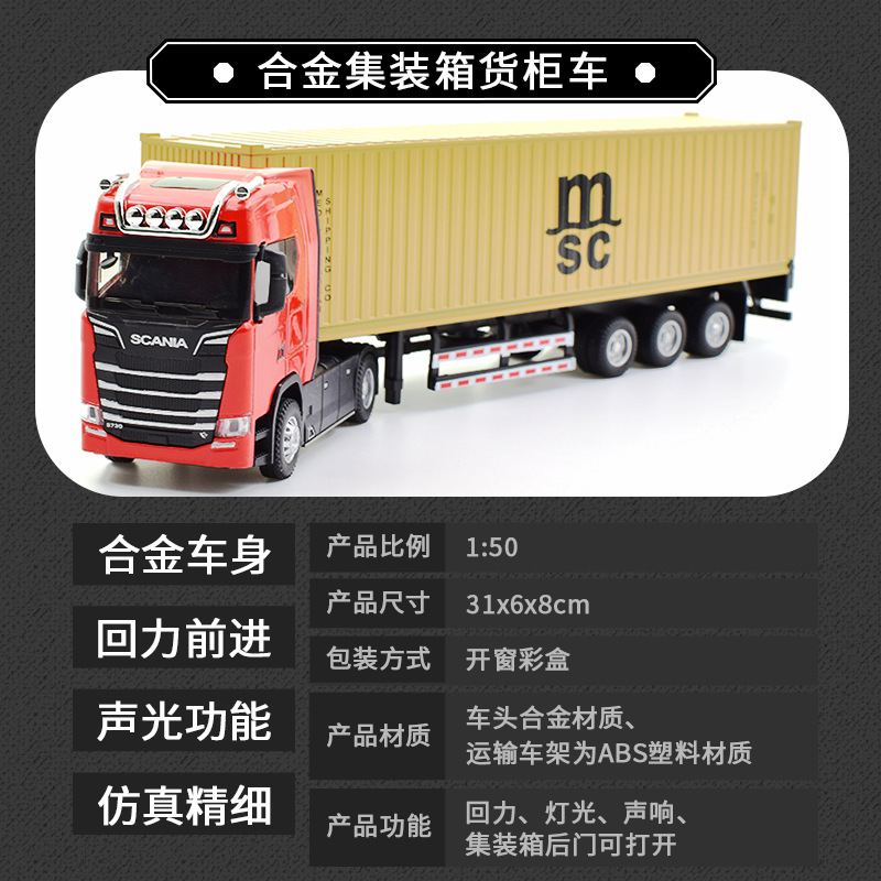• 新款仿真合金集装箱货柜运输车回力声光1:36拖头汽车模型儿童玩具