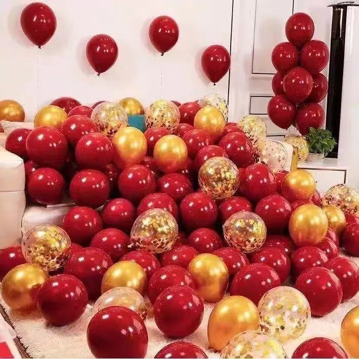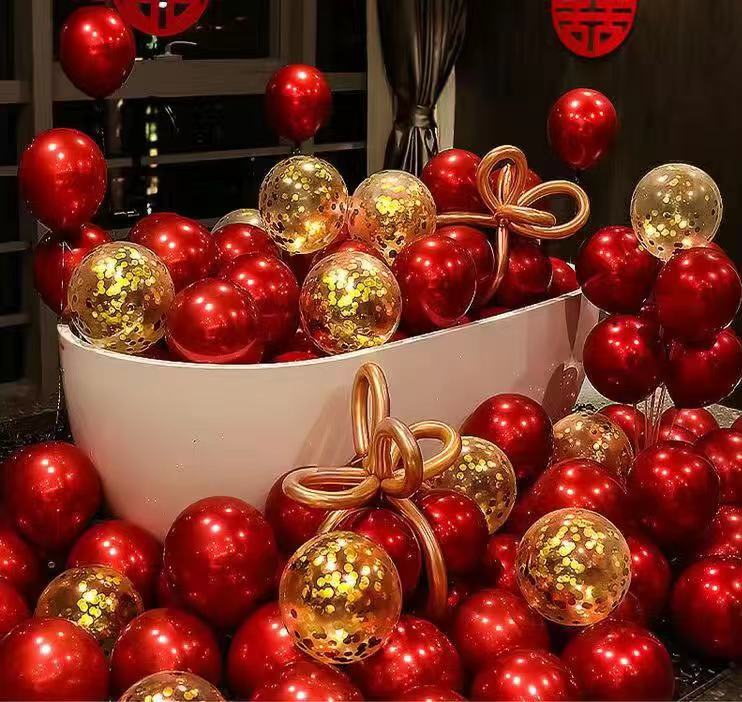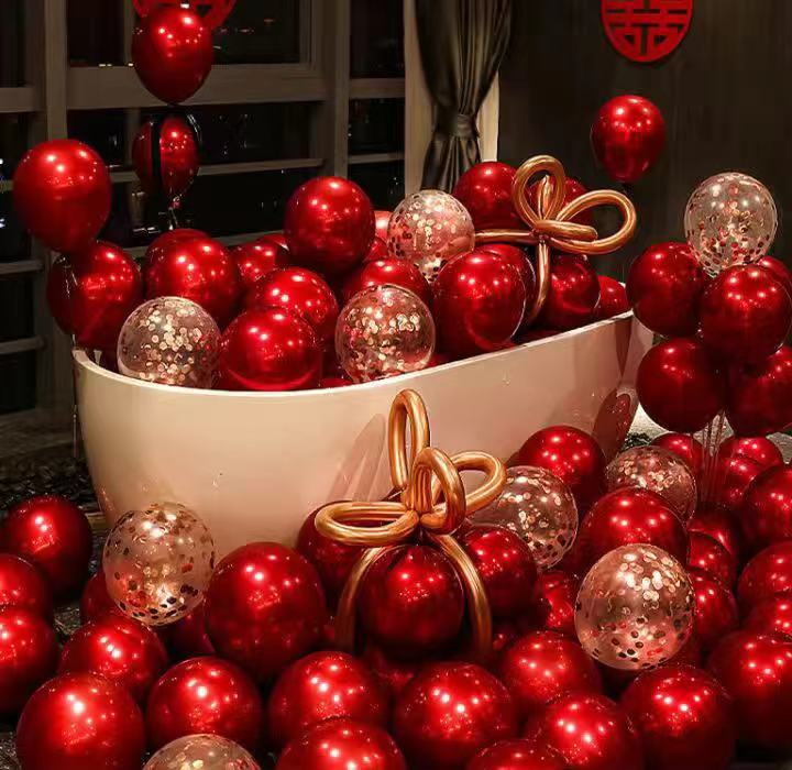 웨딩 웨딩 룸 풍선 웨딩 장식 새 집 장식 더블 두꺼운 보석 빨간 웨딩 풍선 도매