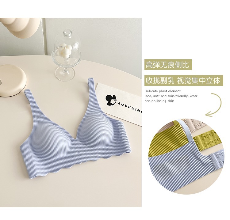 정품 지쿠 무흔적 여성용 속옷, 와이어 없음, 작은 가슴을 위한 푸쉬업, 부드러운 지지력, 프렌치 섹시 딥 V 탑업 브라