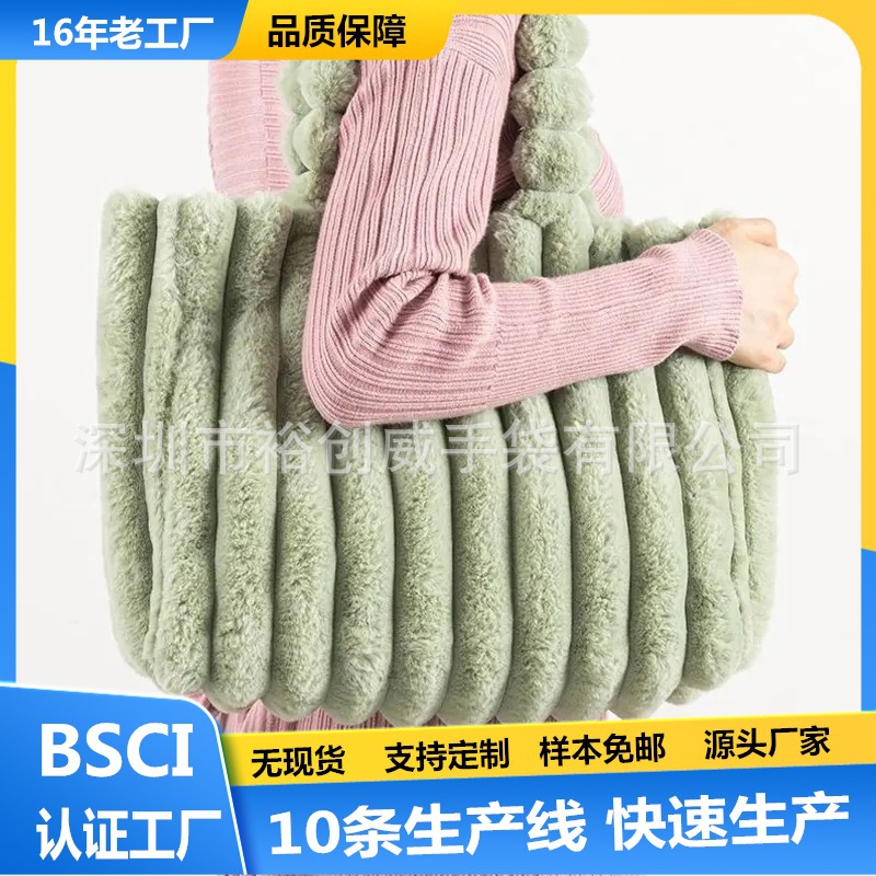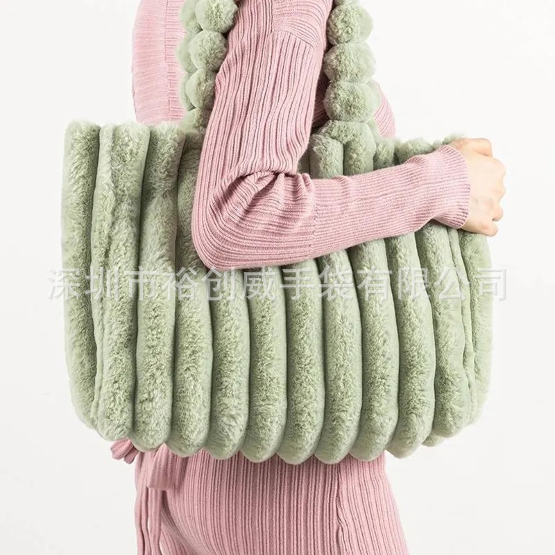 BCI 공장 도매 가을과 겨울 새로운 모피 가방 녹색 모피 핸드백 봉제 핸드백 가방스토어 가기