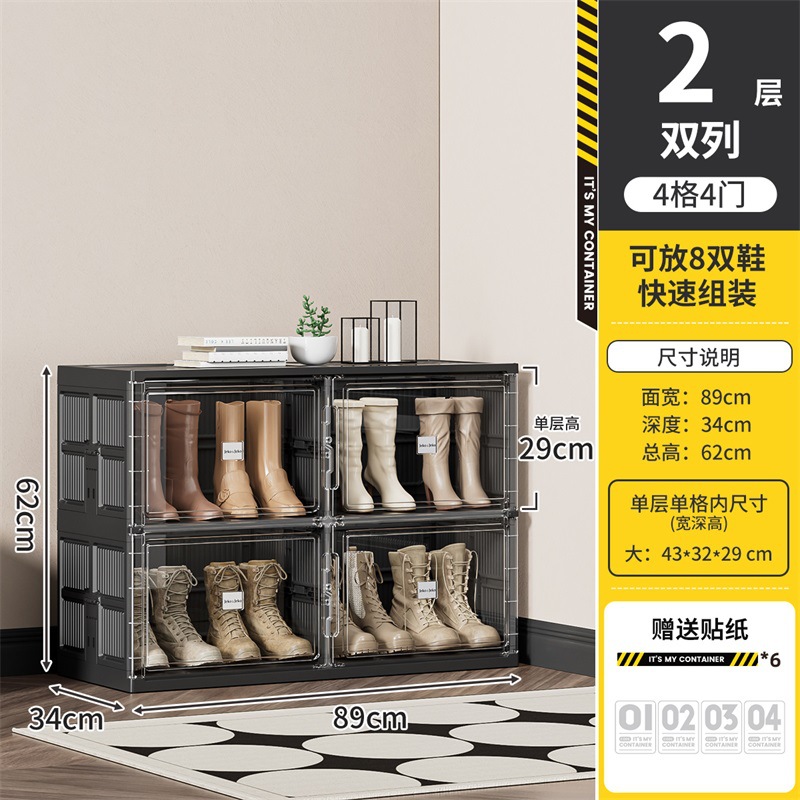 • [더블 줄] 2 층 2 도어 [8 켤레 신발] [블랙]]