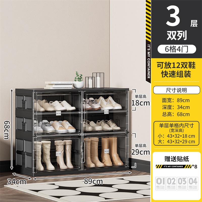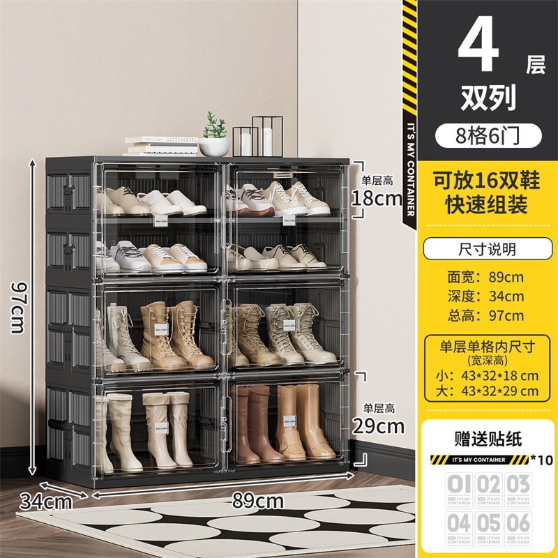 • [더블줄] 4 레이어 4 도어 [16 켤레 신발] [블랙]]