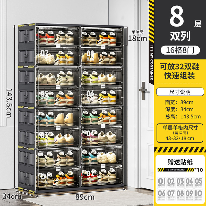 • [더블 행] 8 층 8 문 [신발 32 쌍] [블랙]]