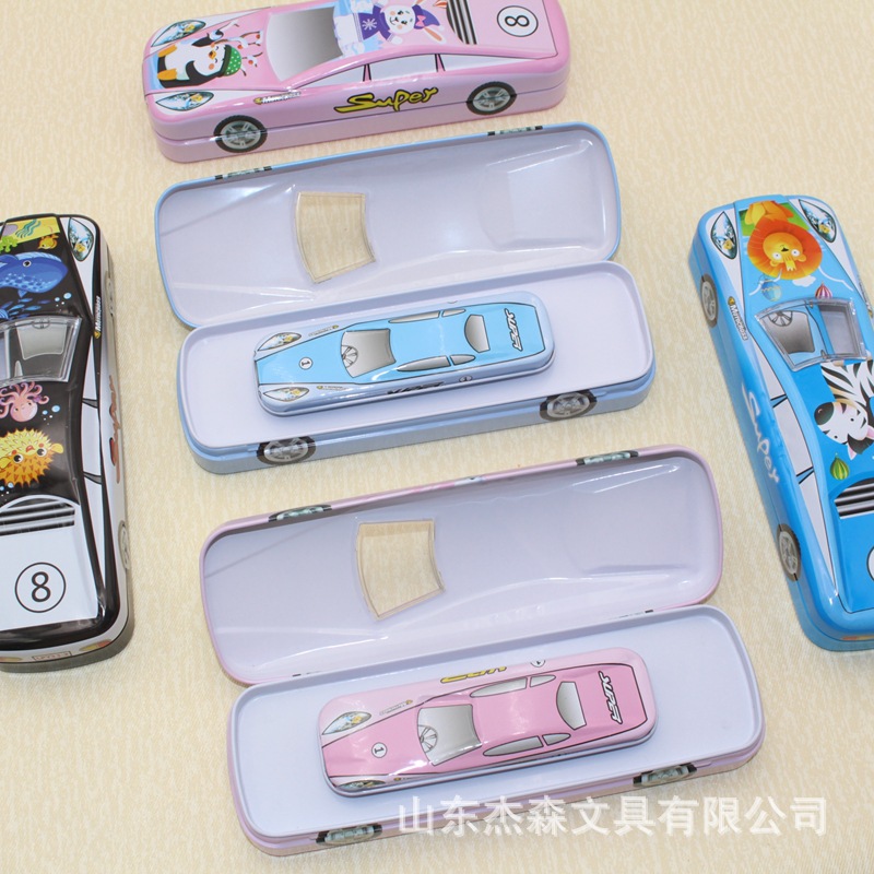 자동차 모양의 이중층 철제 문구 케이스 어린이 만화 연필 케이스 초등학생 틴플레이트 연필 케이스 문구 상품