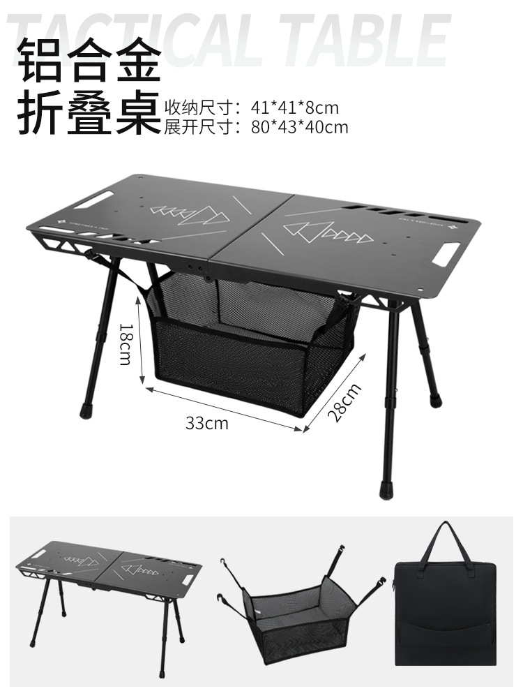 야외 캠핑 알루미늄 합금 경량 전술 테이블 접이식 테이블 휴대용 스토리지 랙 검게 스타일 식탁 피크닉