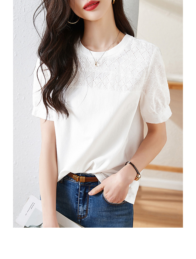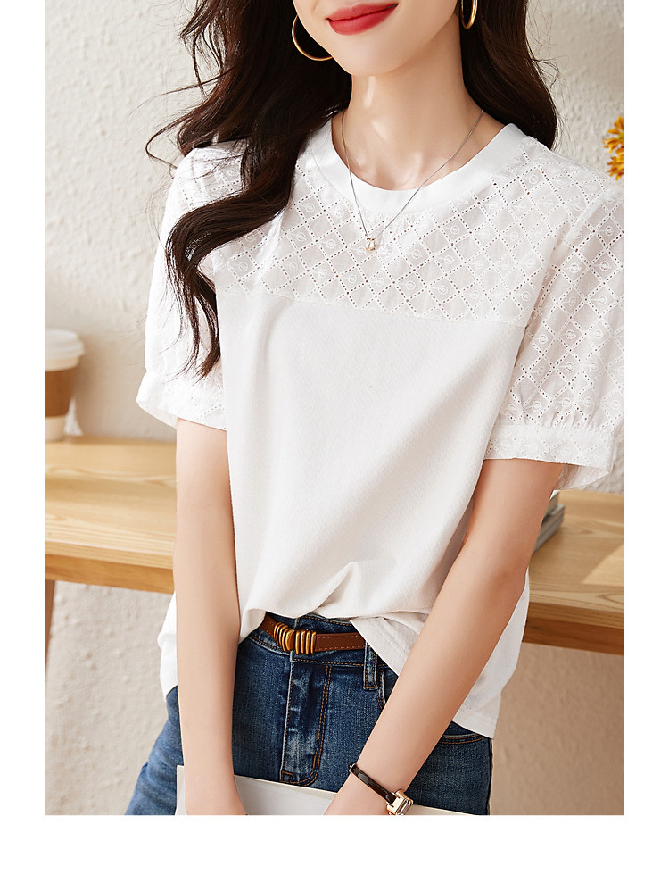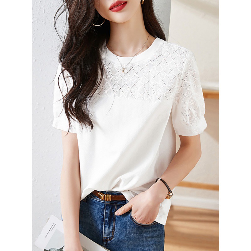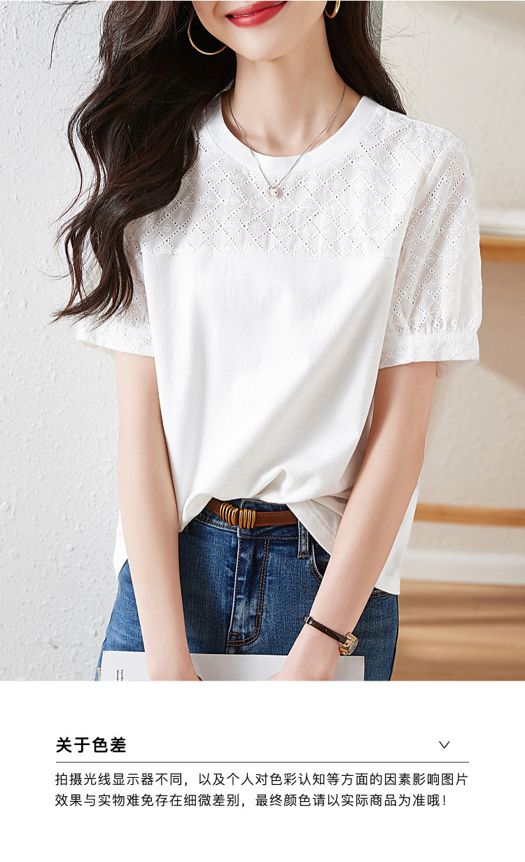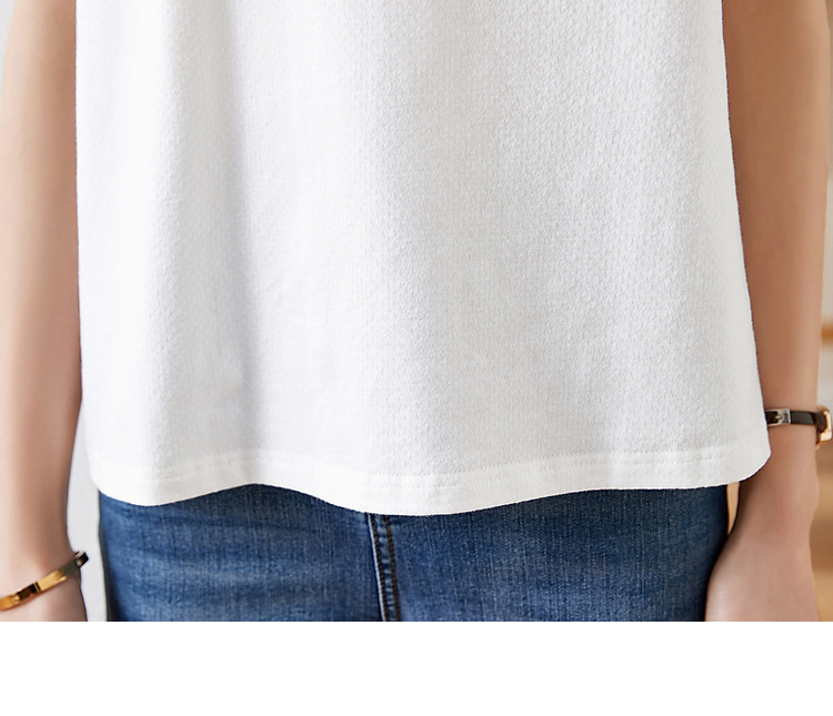 일본과 한국 스타일 재고 면 자수 스티치 조커 티셔츠 23 여름 새로운 단색 한국 스타일 유행 조커 여성 티셔츠
