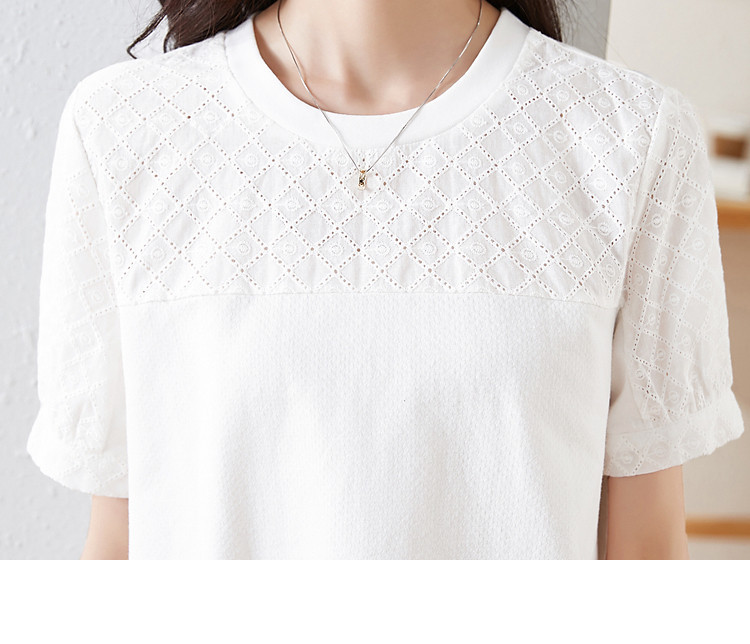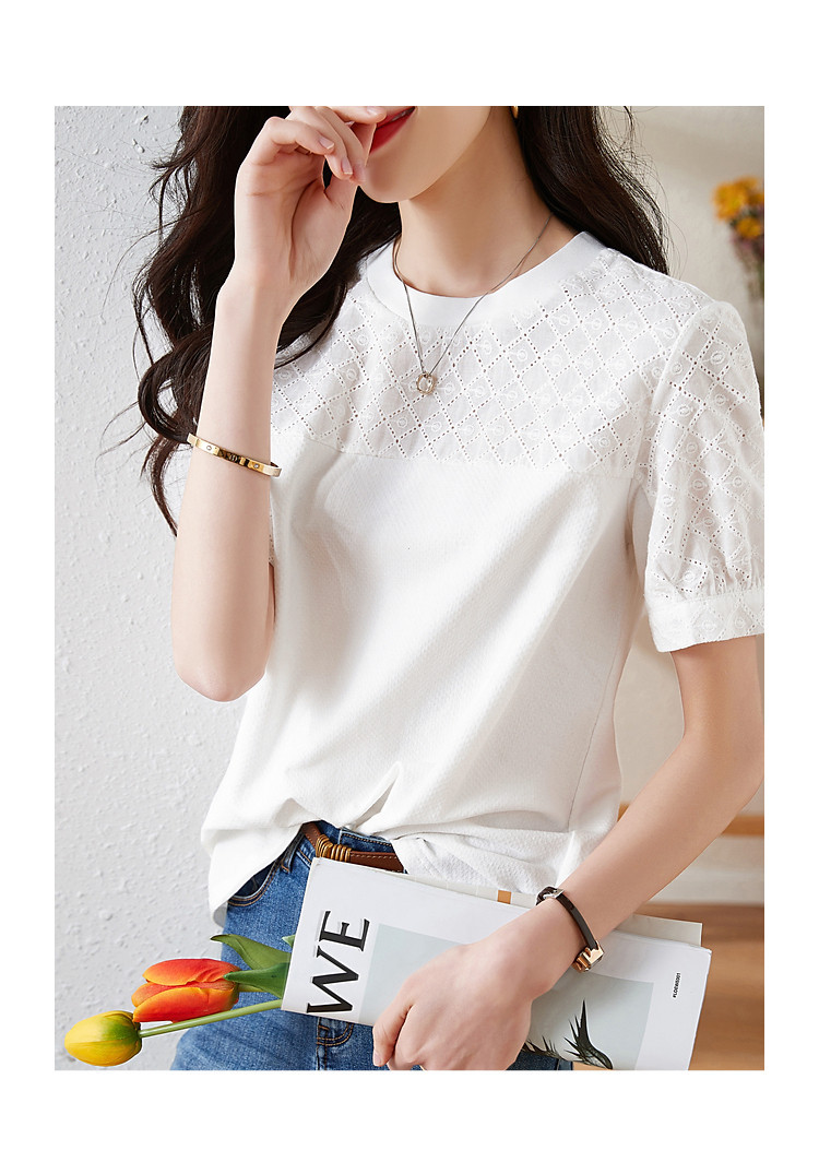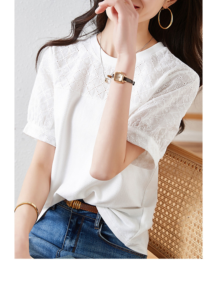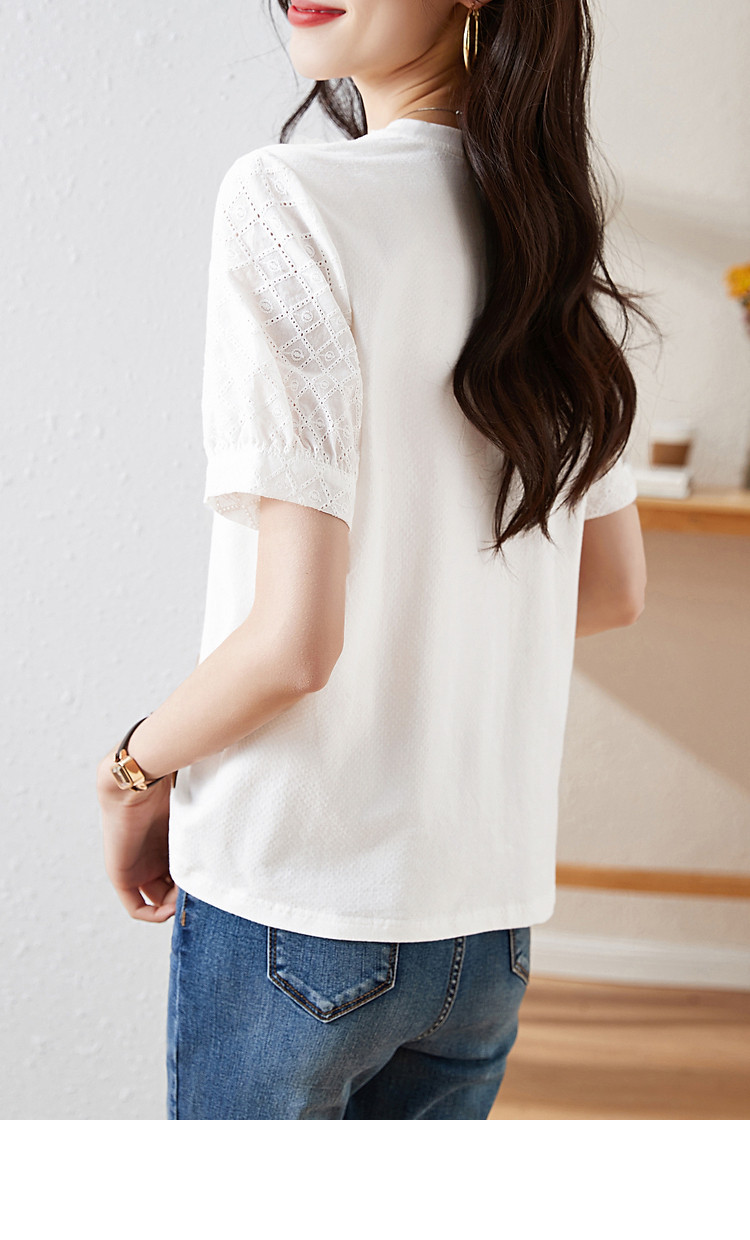 일본과 한국 스타일 재고 면 자수 스티치 조커 티셔츠 23 여름 새로운 단색 한국 스타일 유행 조커 여성 티셔츠