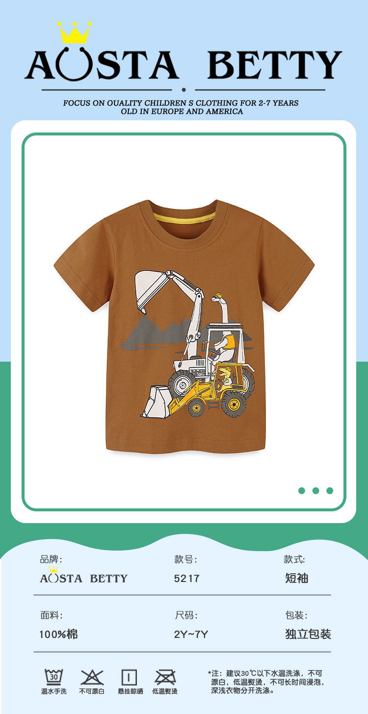 유럽과 미국 스타일 아동복 티셔츠 니트 면 만화 인쇄 소년 티셔츠 유행 라운드 넥 어린이 반팔 탑스토어 가기