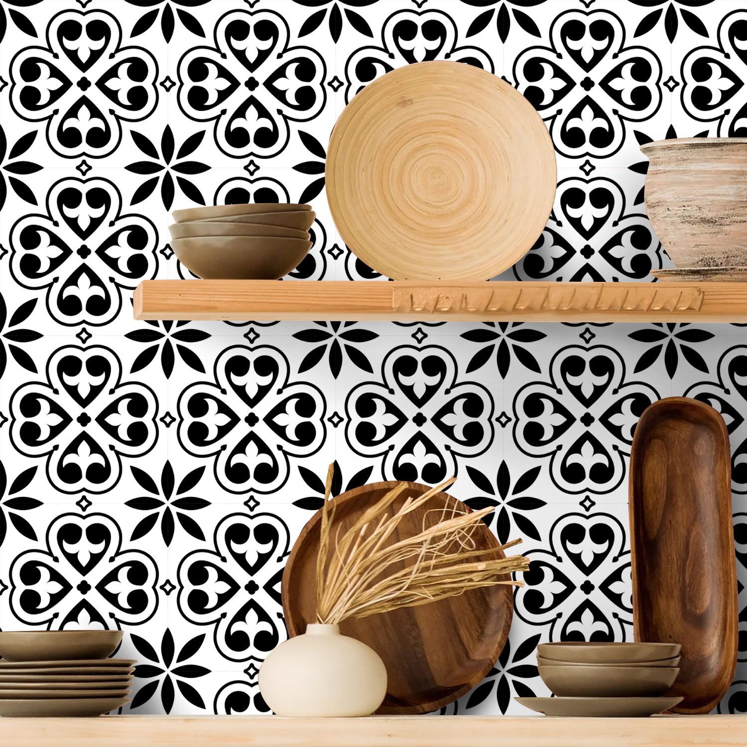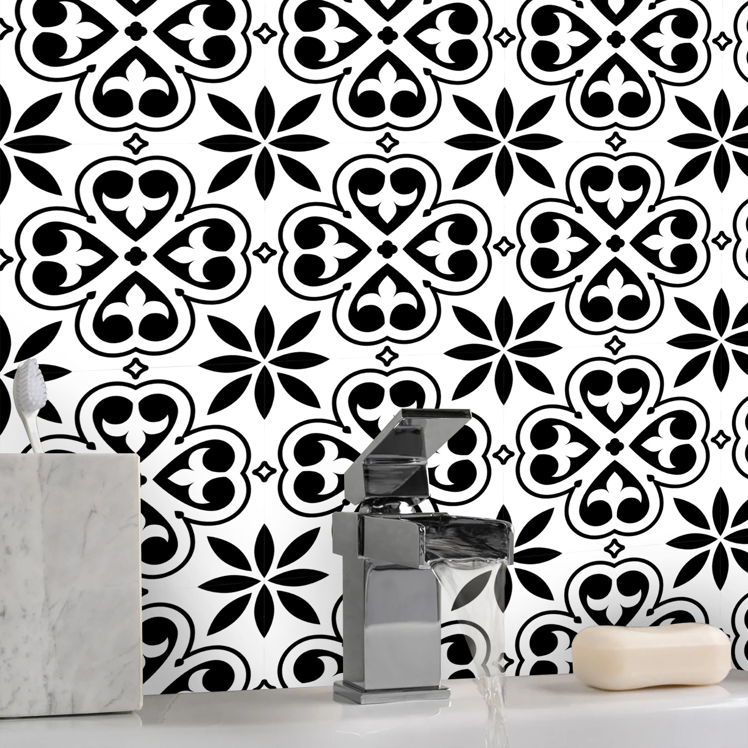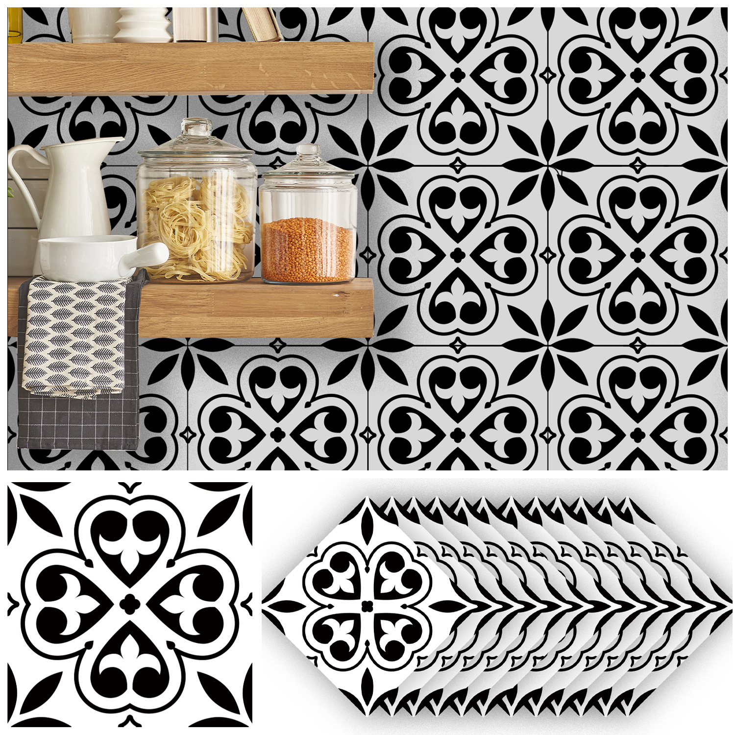 Funlife 검은 고무 바닥 강한 커버 두꺼운 세라믹 타일 스티커 유럽 클래식 패턴 홈 리노베이션 스티커 KTS020스토어 가기