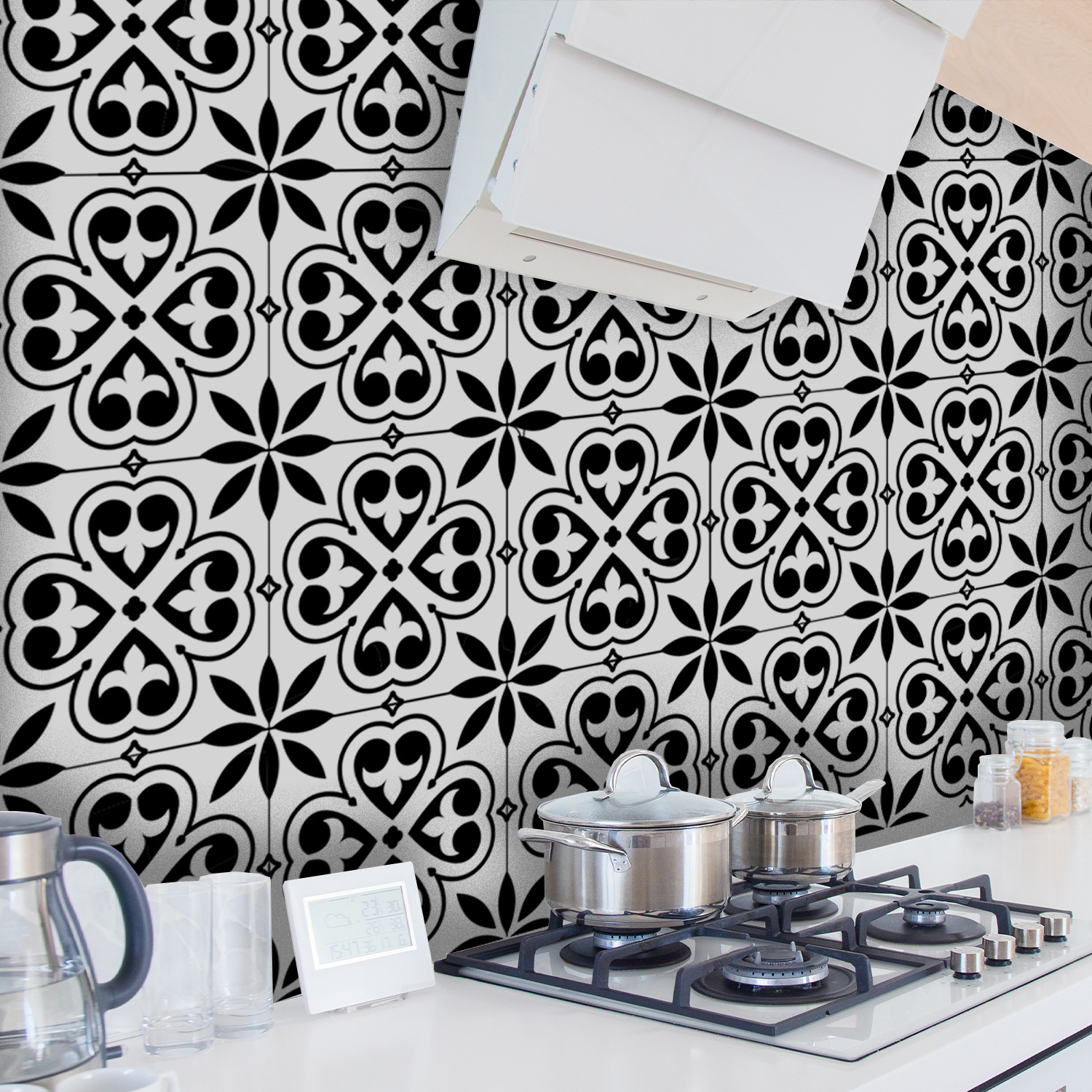 Funlife 검은 고무 바닥 강한 커버 두꺼운 세라믹 타일 스티커 유럽 클래식 패턴 홈 리노베이션 스티커 KTS020