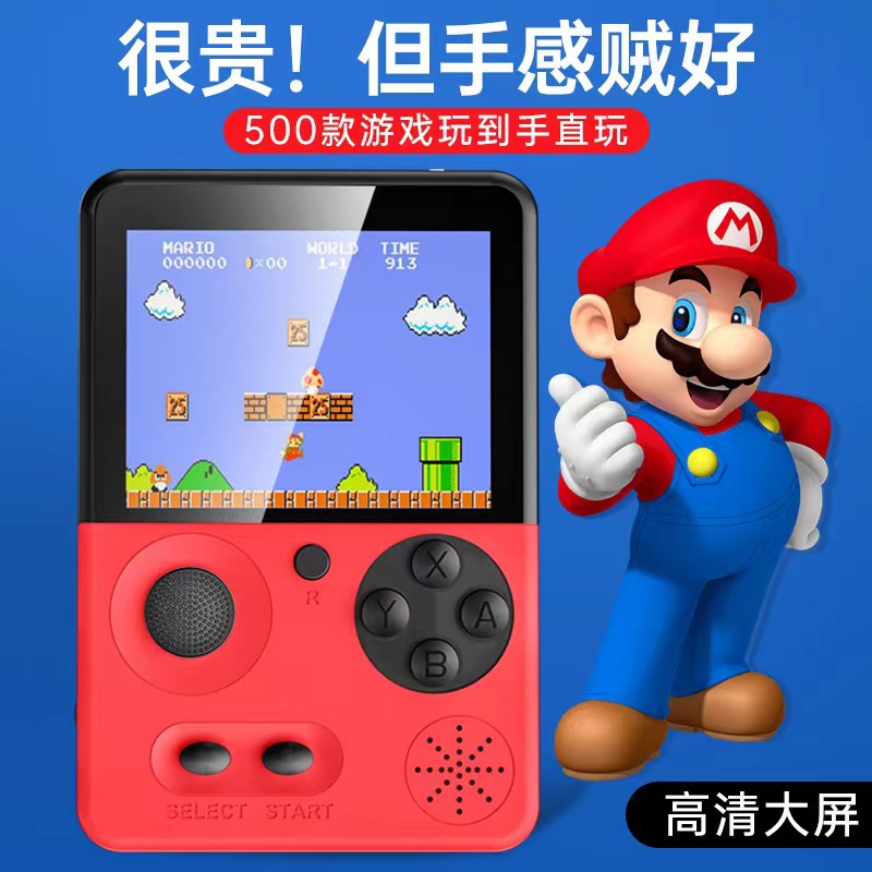 새로운 어린이 핸드 헬드 게임기 수프 두 배 향수 복고풍 클래식 FC 내장 게임 500 하나의 휴대용