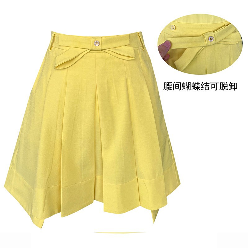MY 골프 의류 여성용 중간 소매 탑 선크림 저지 하이 엔드 옐로우 세트 주름 치마 스포츠 테니스 스커트