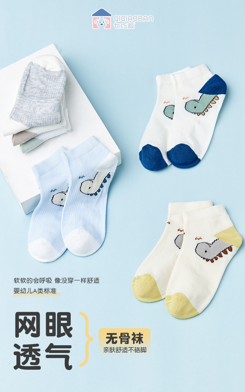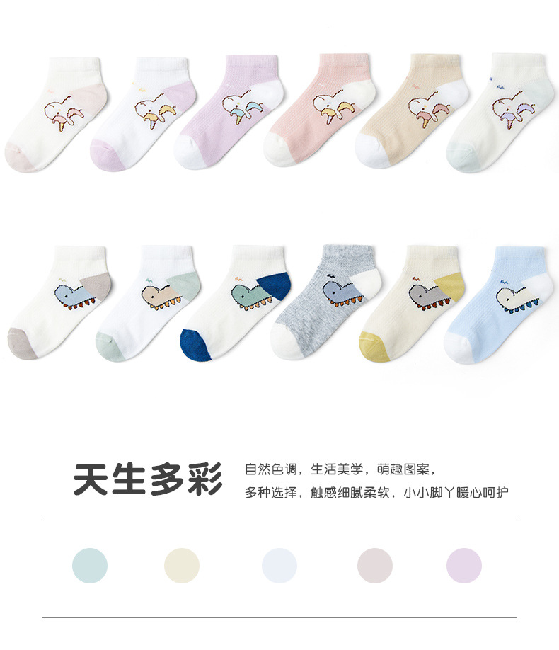 Tangram 어린이 양말 2023 새로운 여름 만화 양말 작은 신선한 통기성 얇은 보트 양말 재고 도매