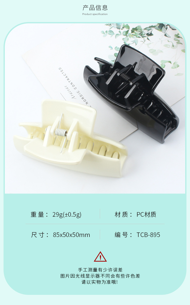 새로운 단색 머리핀 간단한 우아한 잡아 클립 중간 상어 클립 뒤 머리 머리핀 여성용 하프 타이 머리 모자 머리핀