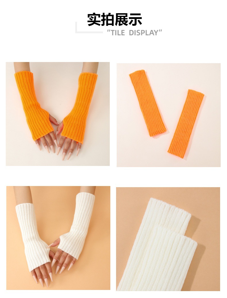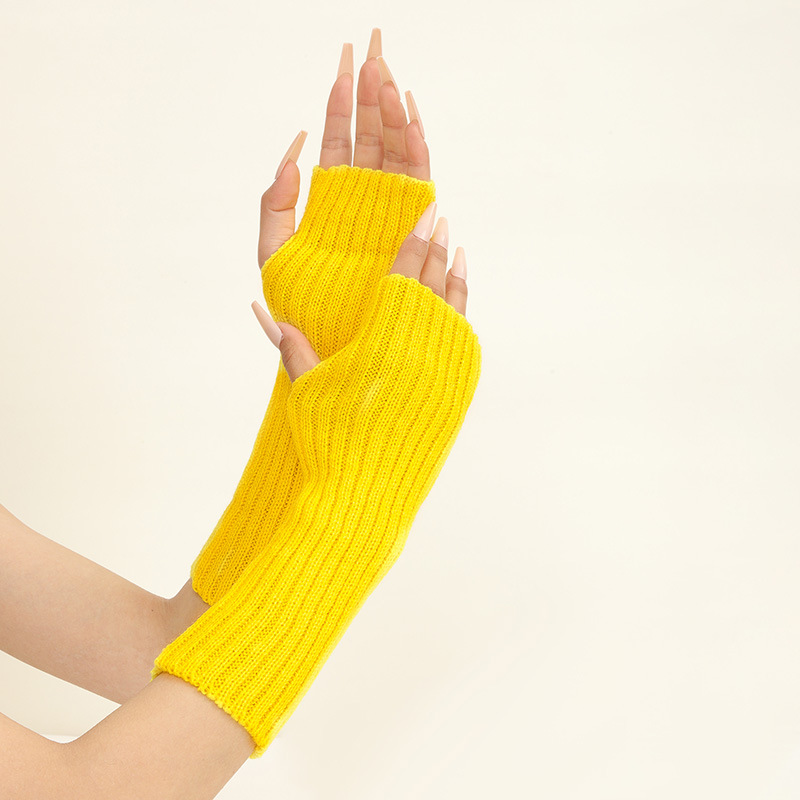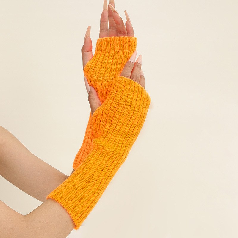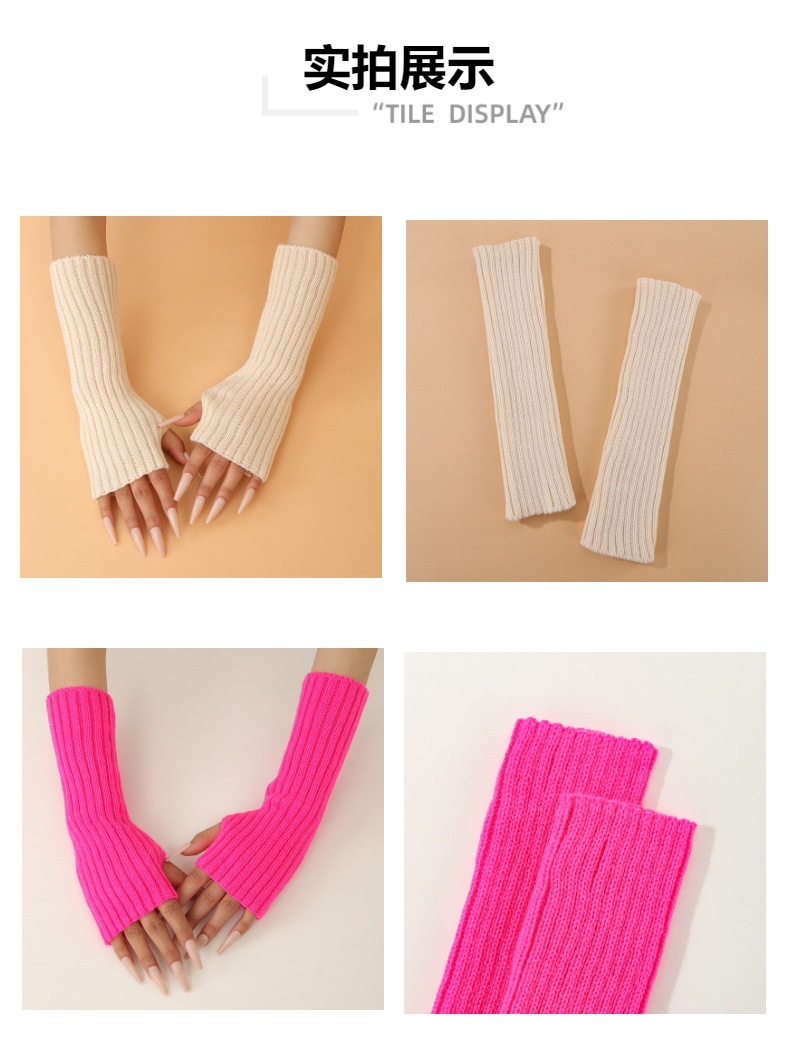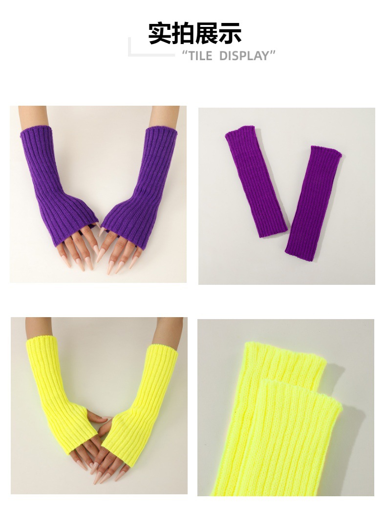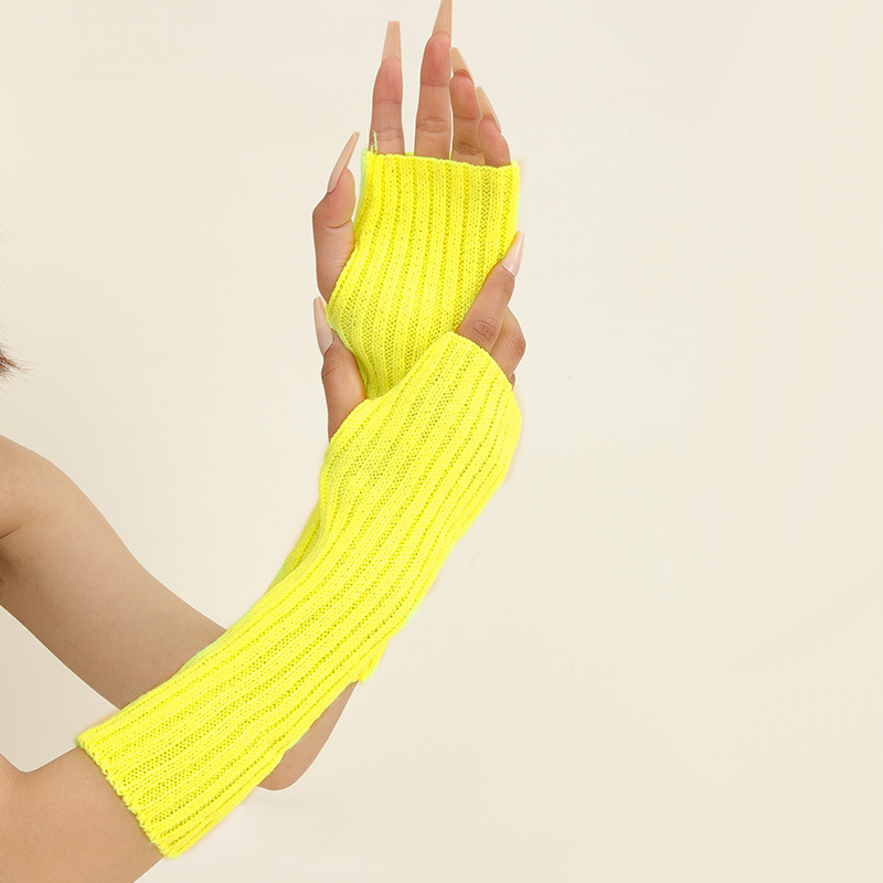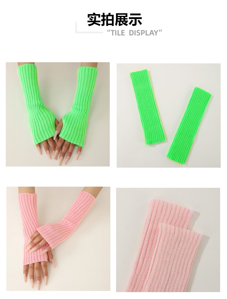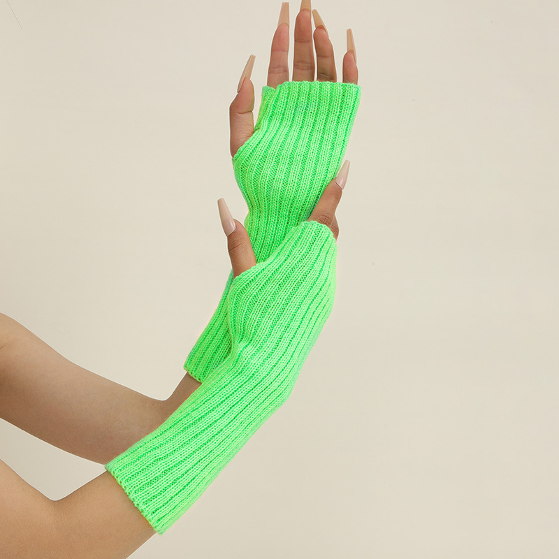 형광 컬러 니트 소매 한국 스타일 따뜻한 하이 스트리트 중간 길이 반 손가락 장갑 남녀스토어 가기