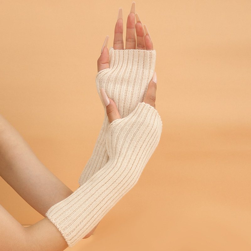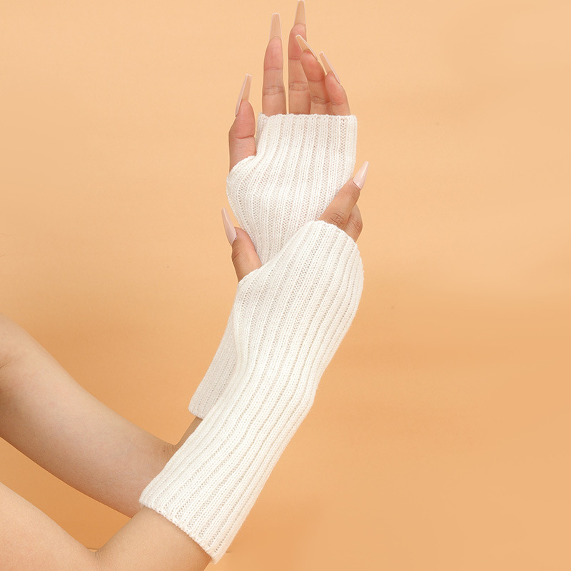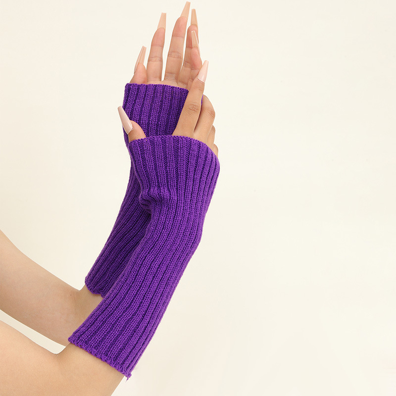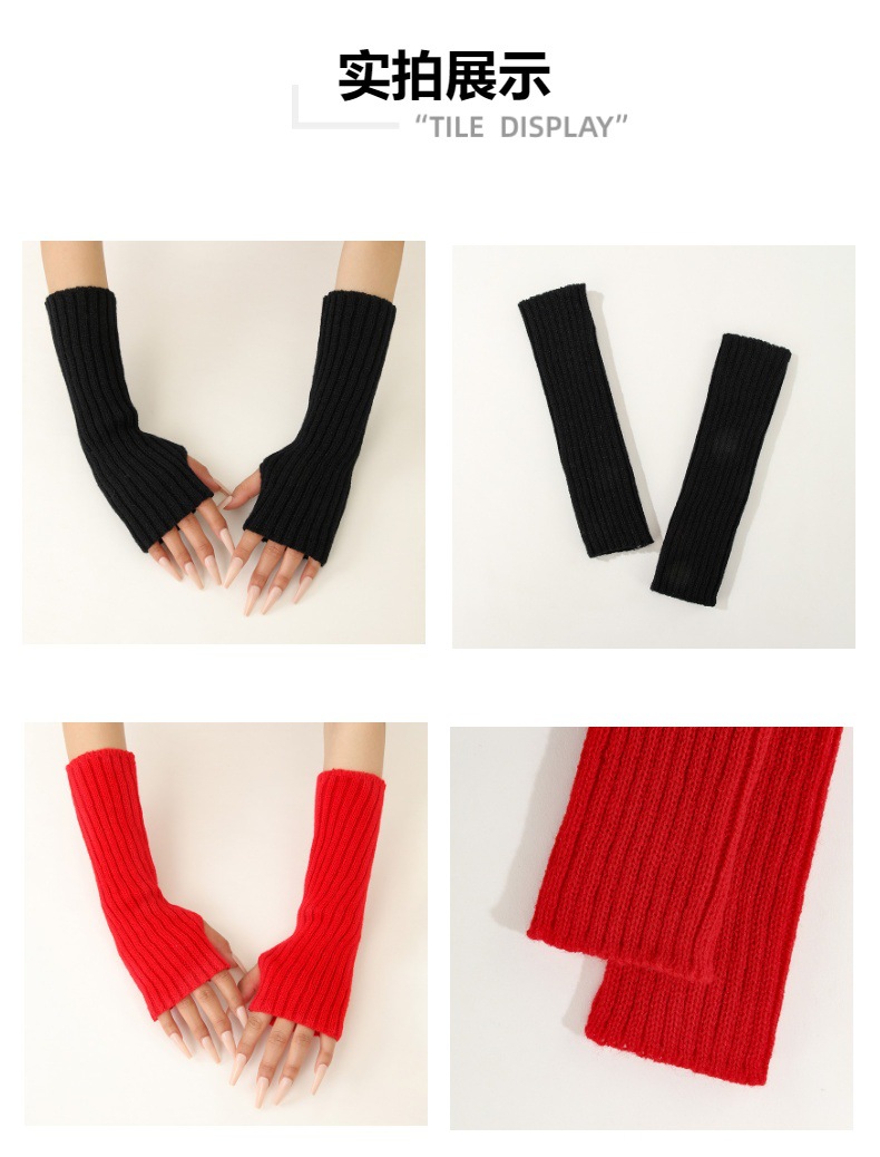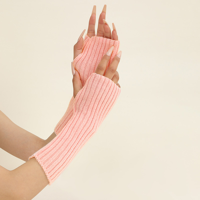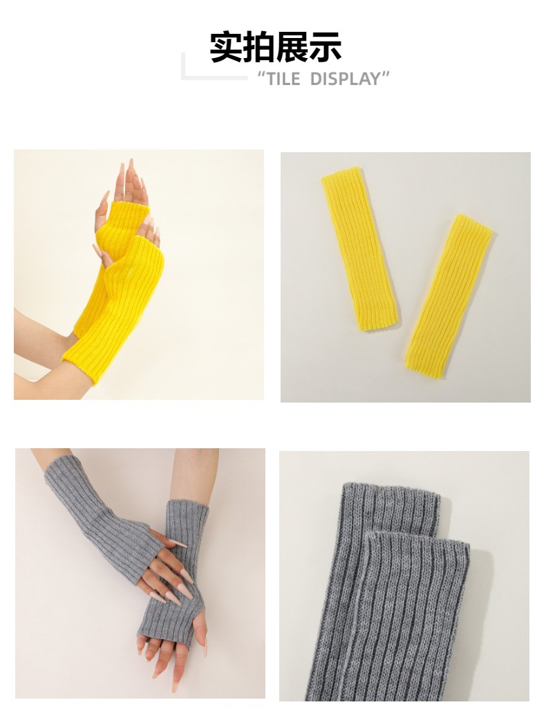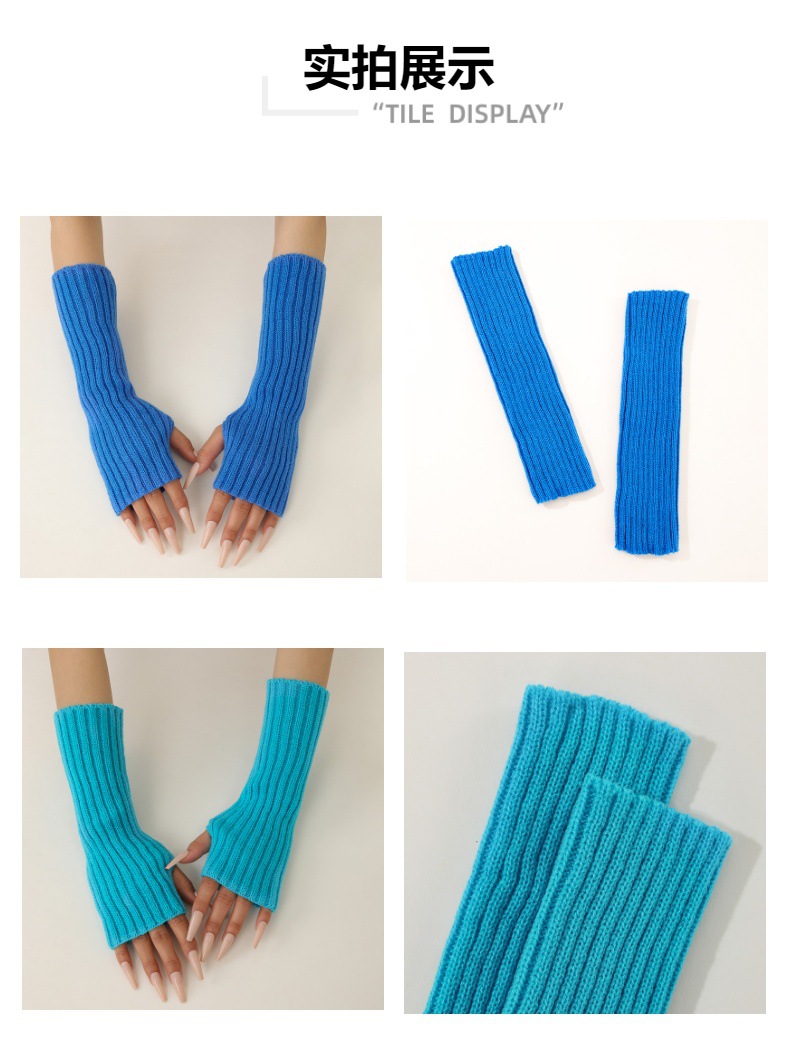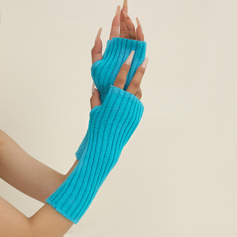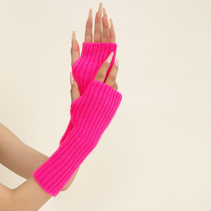 형광 컬러 니트 소매 한국 스타일 따뜻한 하이 스트리트 중간 길이 반 손가락 장갑 남녀스토어 가기