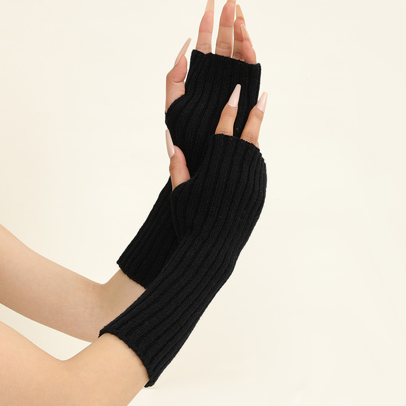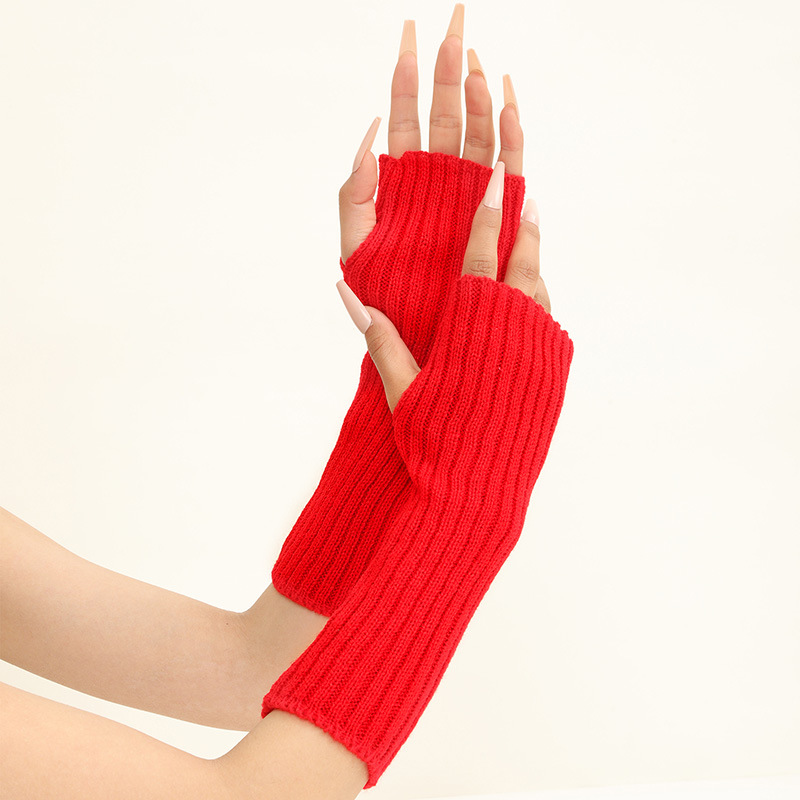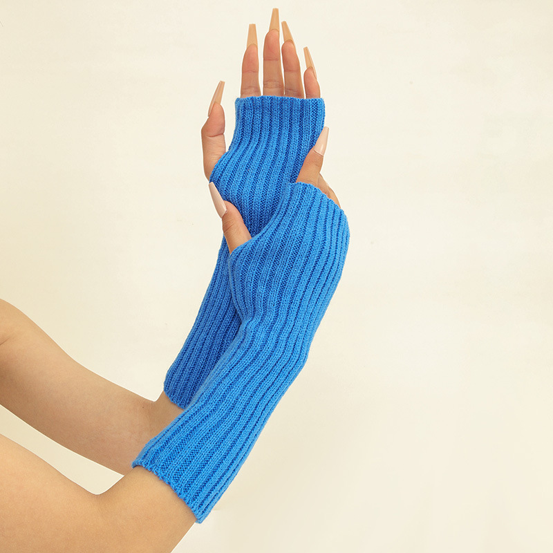 형광 컬러 니트 소매 한국 스타일 따뜻한 하이 스트리트 중간 길이 반 손가락 장갑 남녀