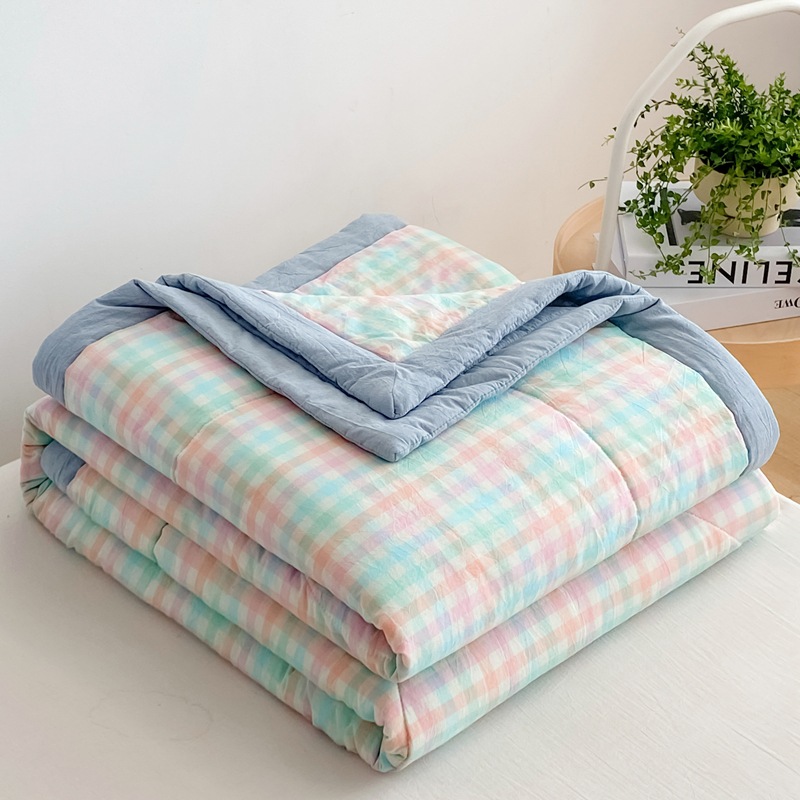 완전 시원한 면 이불, 세탁 가능한 면 얇은 이불, 싱글 및 더블 순면 학생 기숙사 에어컨 이불, 기계 세탁 가능