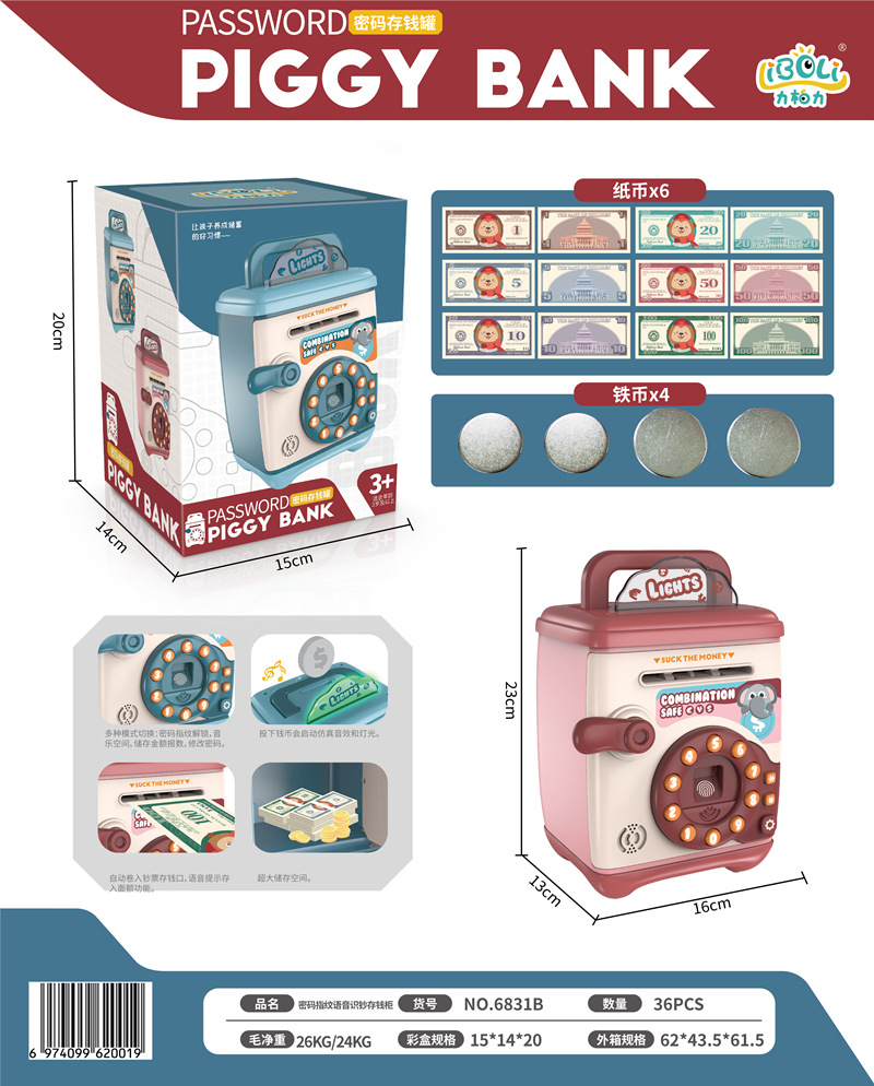 시뮬레이션 지문 터치 암호 돼지 저금통 어린이 ATM 소녀 암호 상자 소년 돼지 저금통