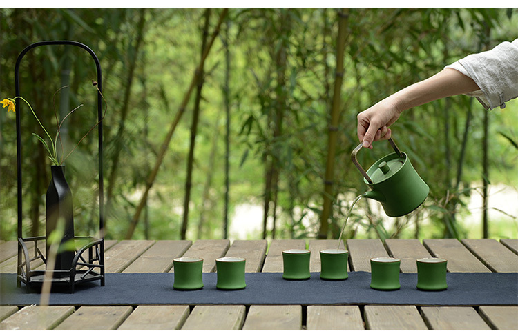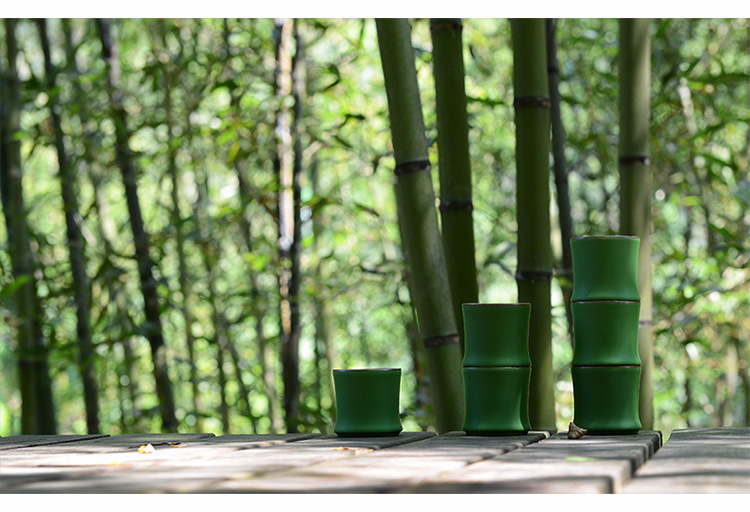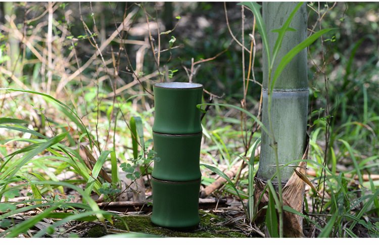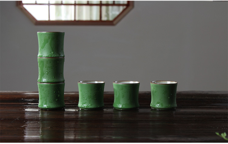 세라믹 대나무 쿵푸 차 세트 차 컵 창조적 인 모방 녹색 대나무 차 컵 마스터 컵 가구 풍경 대나무 컵 세트스토어 가기