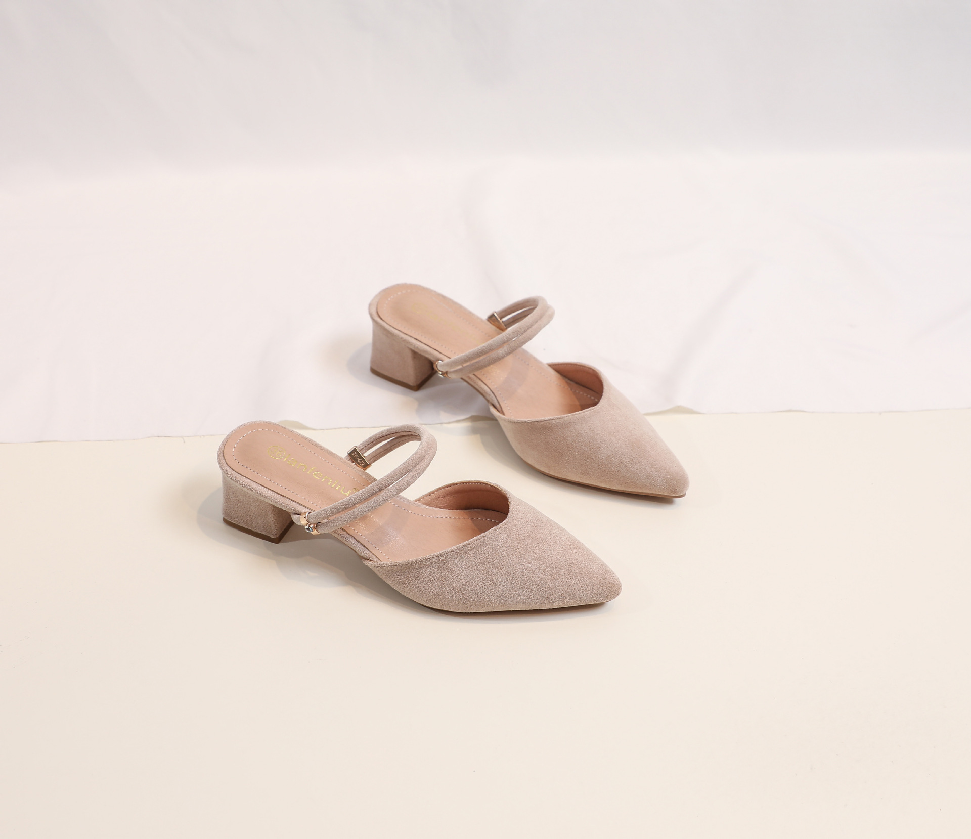 여성용 Baotou 샌들 2024 새로운 여름 미드 힐 두꺼운 페어리 스타일 패션 로우 힐 스커트 샌들 여성용스토어 가기