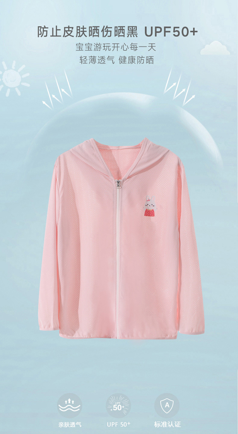 어린이 태양 보호 의류 소년 소녀 후드 코트 여름 새로운 아기 피부 의류 태양 보호 의류 UPF50 + 대체 가능한 모발