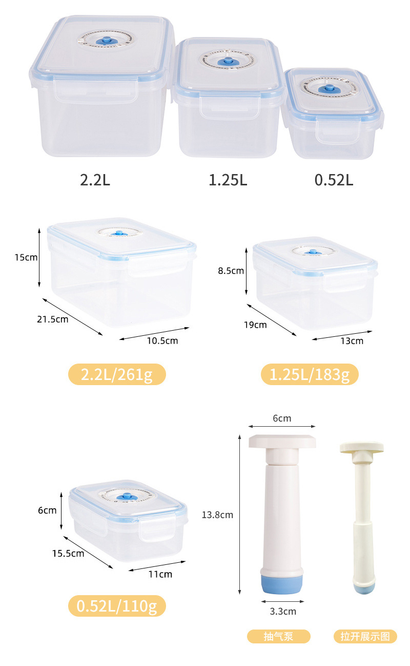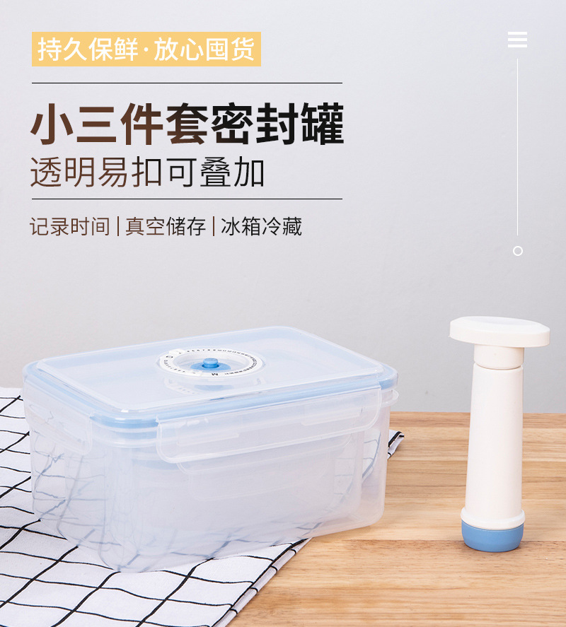 진공 신선 유지 시리얼 곡물 밀봉 탱크 소형 3 종 세트 밀봉 탱크 식품 등급 PP 플라스틱 투명 보관함