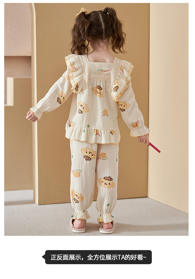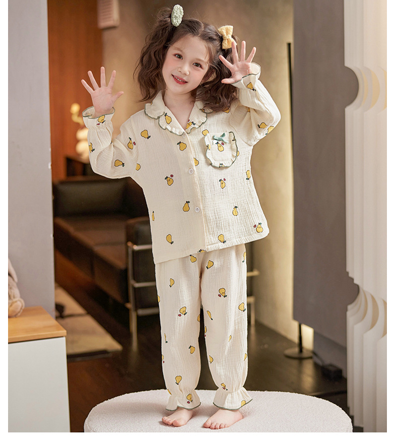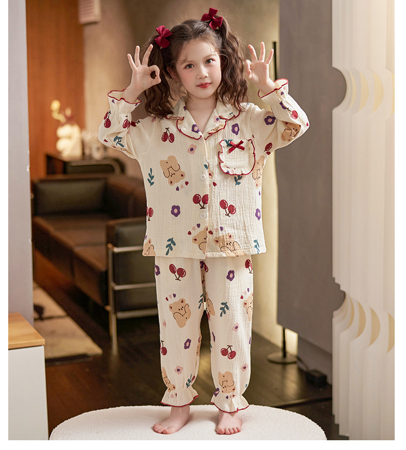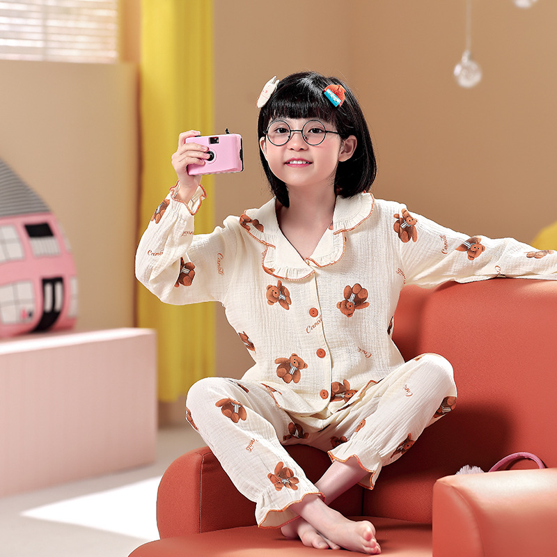 어린이 잠옷 소녀 봄과 가을 순면 거즈 얇은 세트 긴 소매 여름 가정용 옷스토어 가기