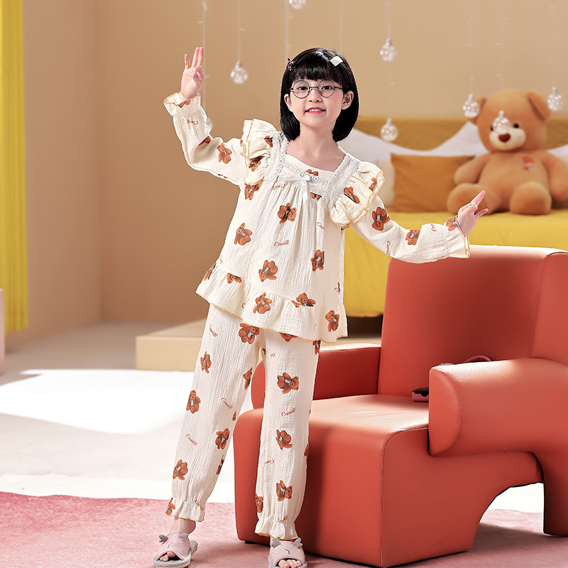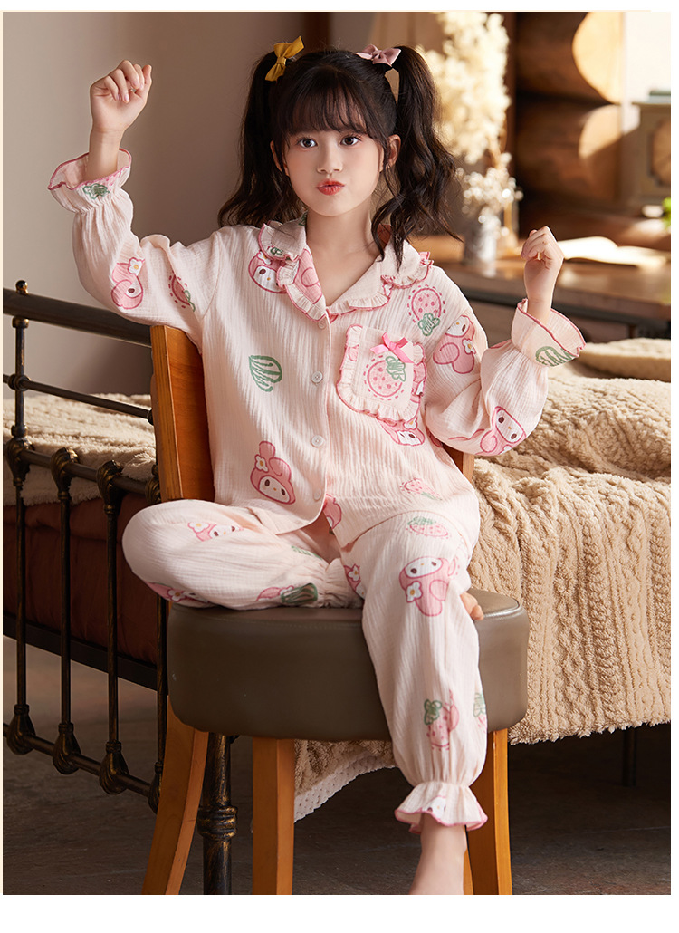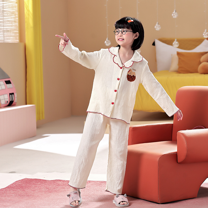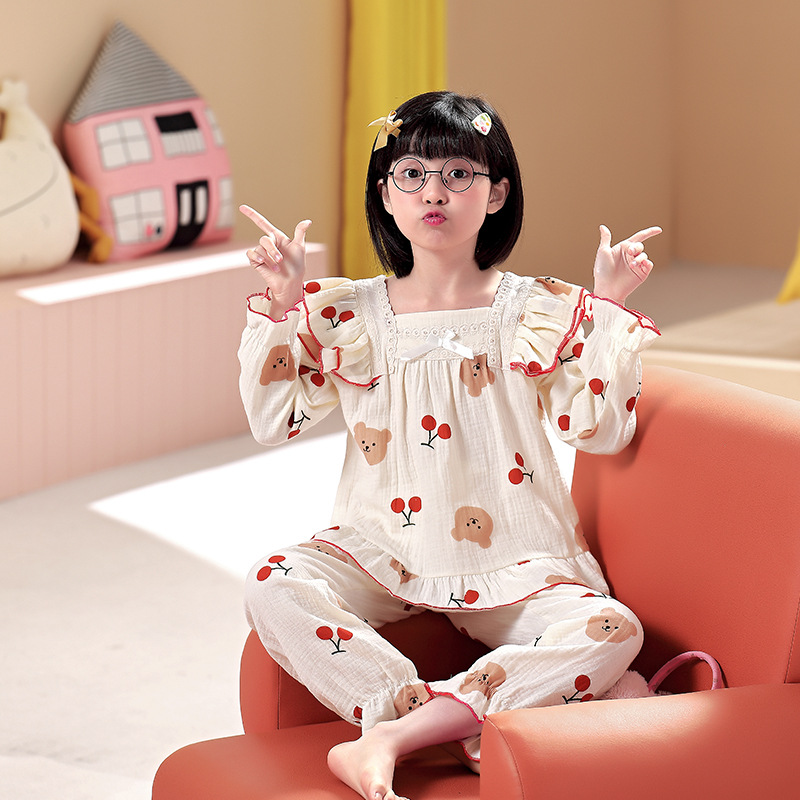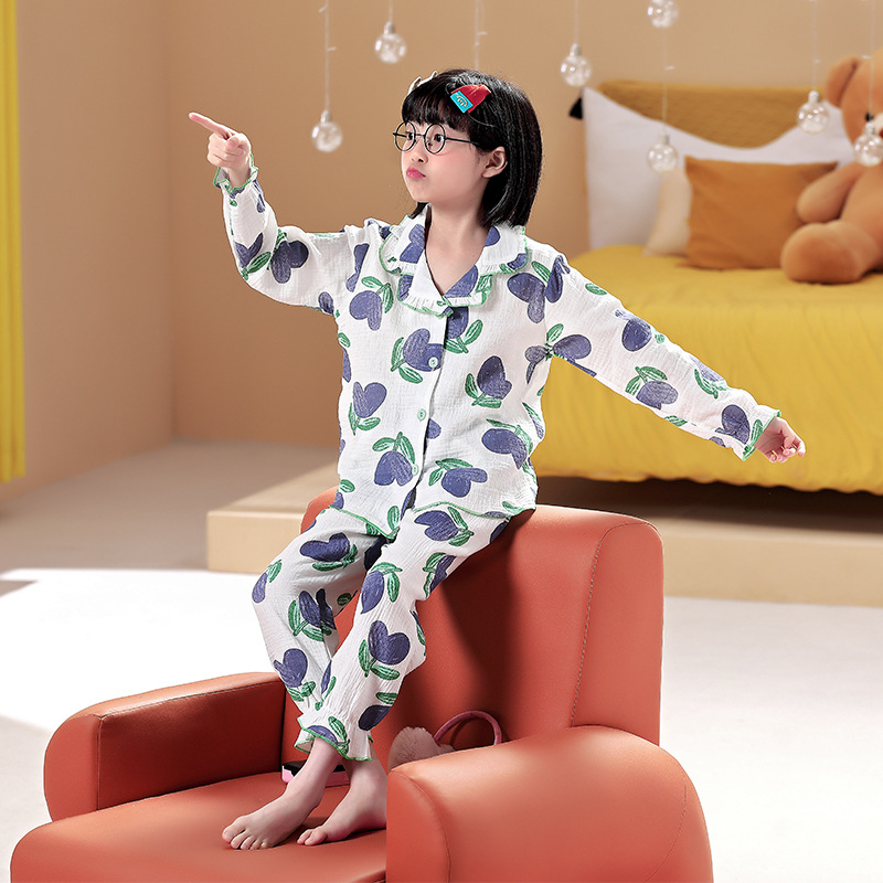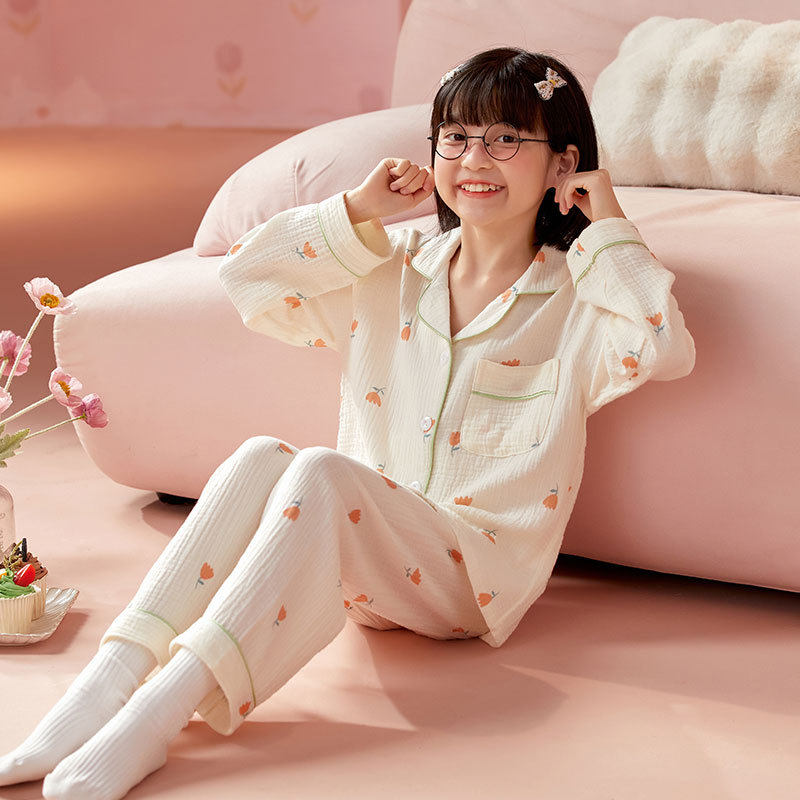 어린이 잠옷 소녀 봄과 가을 순면 거즈 얇은 세트 긴 소매 여름 가정용 옷