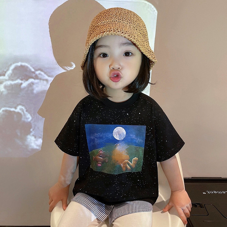 [속보 코드 특별 제공] 소녀 만화 반팔 티셔츠 봄 새로운 스타일 어린이 소년 다목적 바닥 셔츠 유행상의스토어 가기