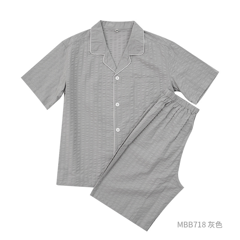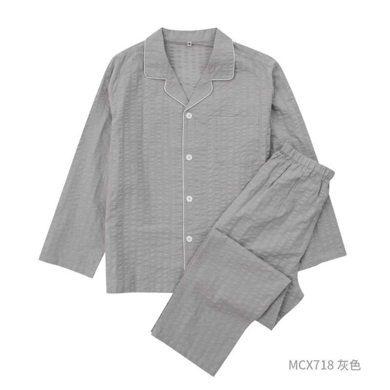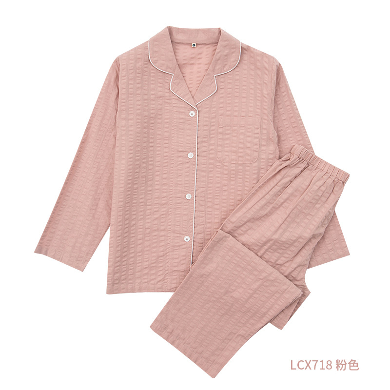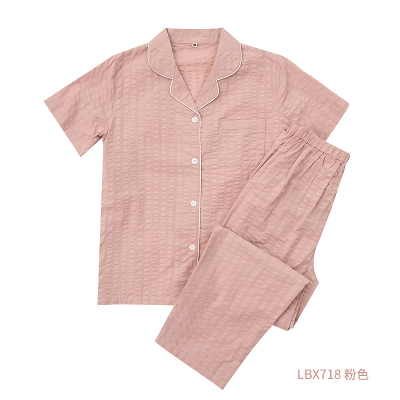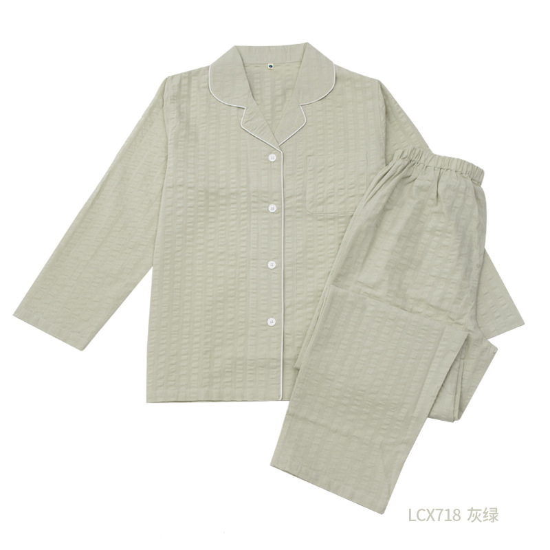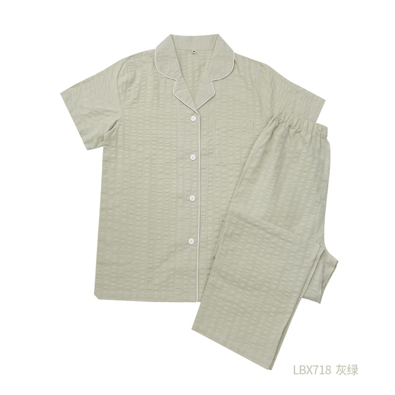 여성용 시어서커 파자마 여름 순면 무지면 여성용 무지 봄, 가을 남성용 고품질 홈웨어 무지 파자마스토어 가기