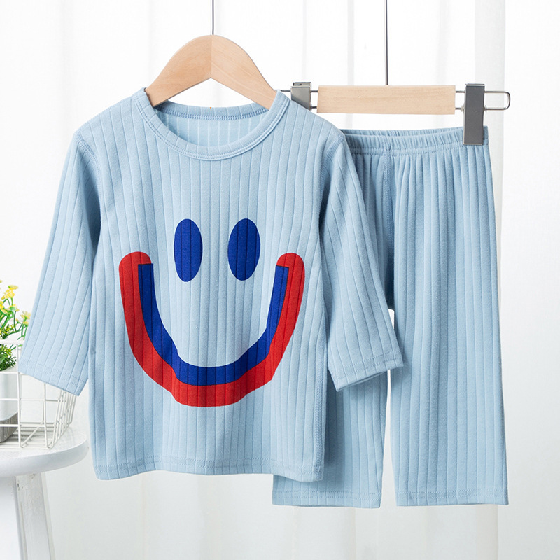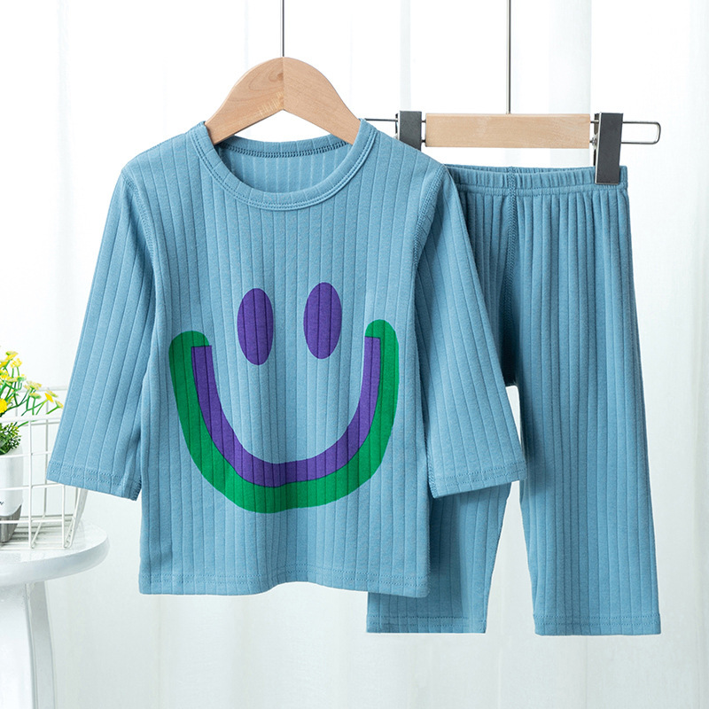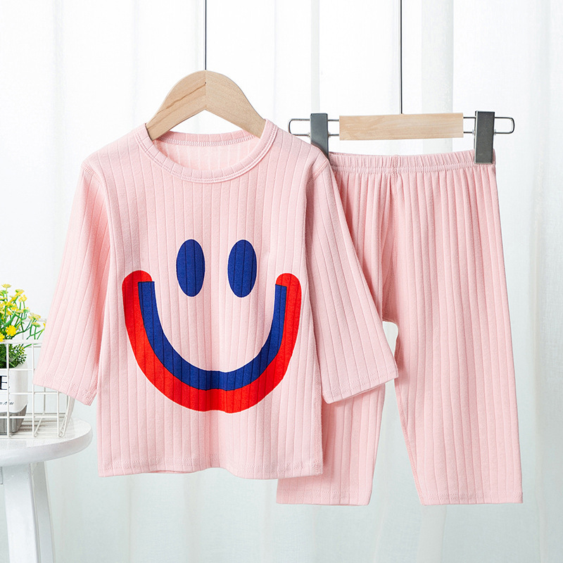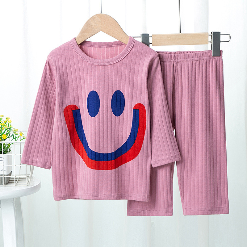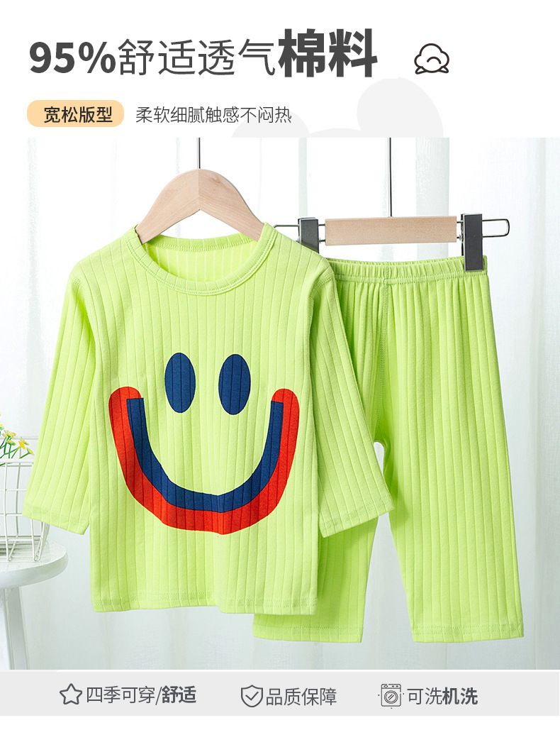 봄과 여름 어린이 잠옷 소년 면 여름 얇은 부모-자식 가정 옷 7 점 세트 여아 에어컨 옷