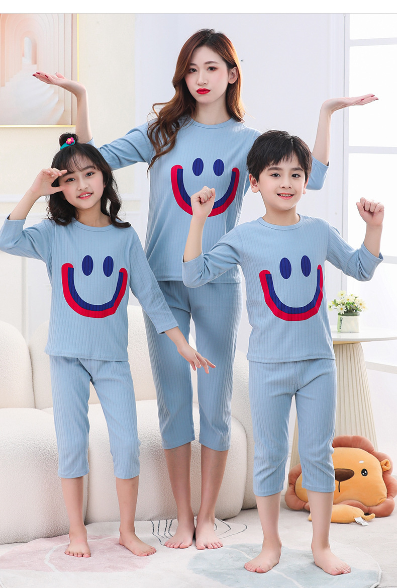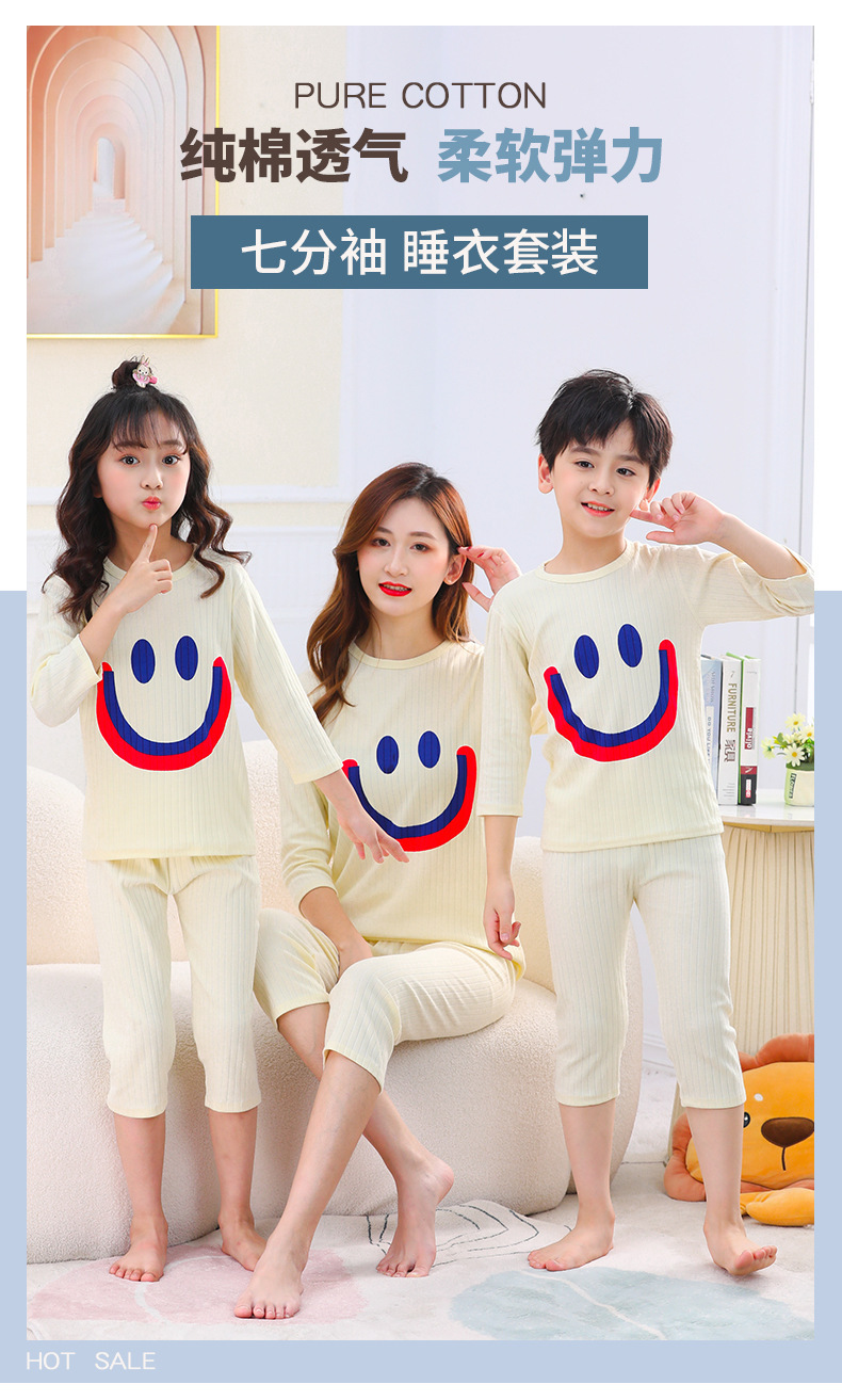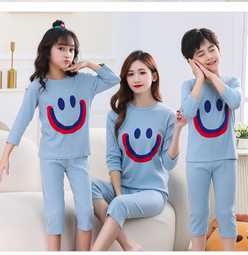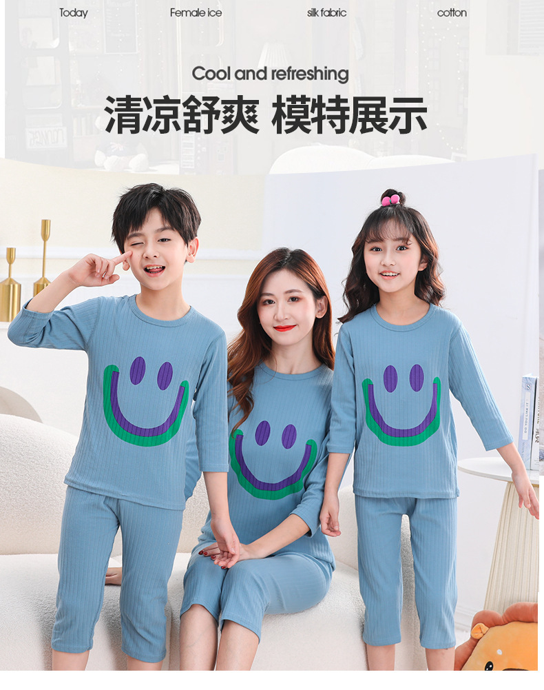 봄과 여름 어린이 잠옷 소년 면 여름 얇은 부모-자식 가정 옷 7 점 세트 여아 에어컨 옷스토어 가기