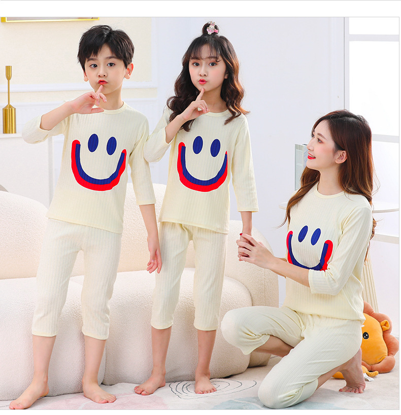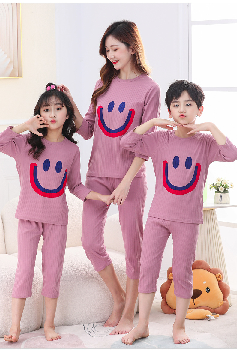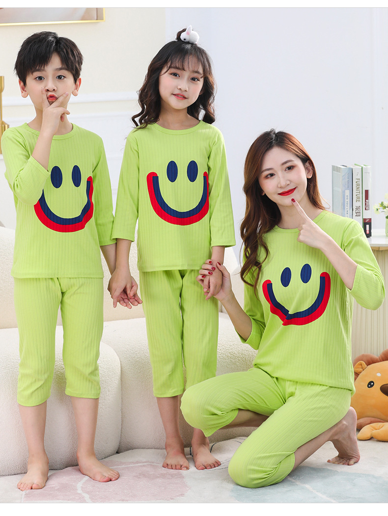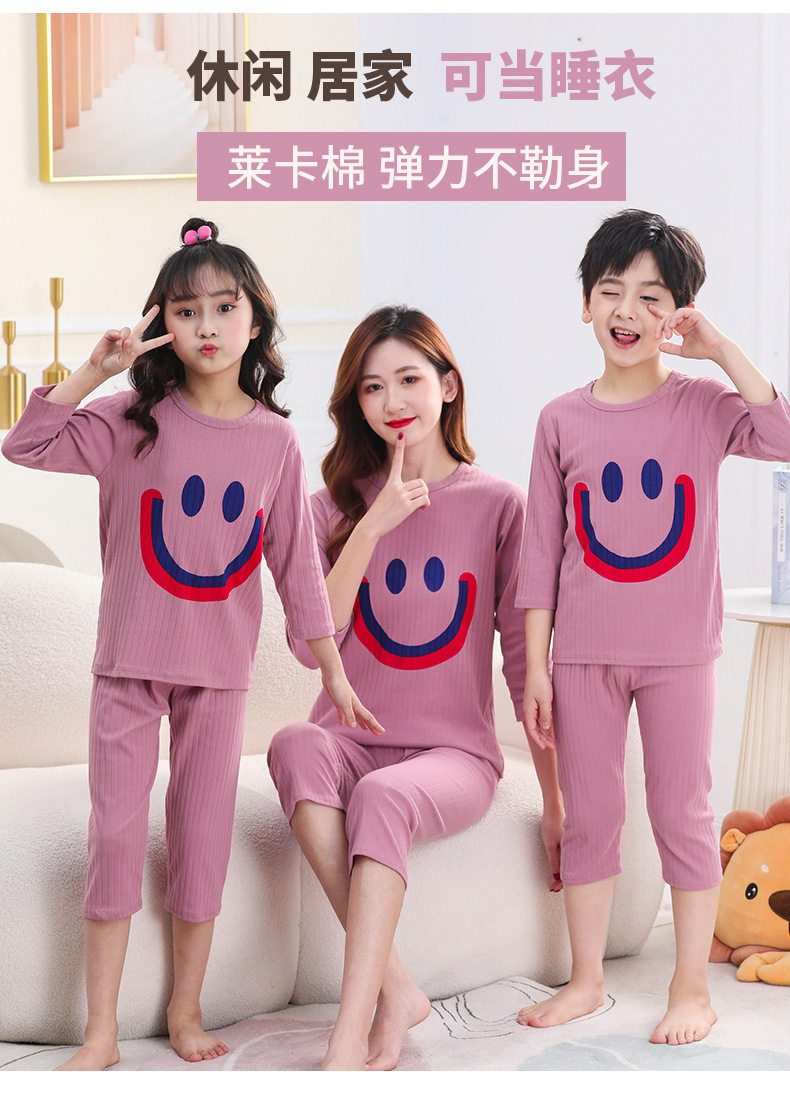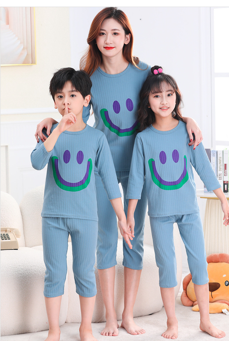 봄과 여름 어린이 잠옷 소년 면 여름 얇은 부모-자식 가정 옷 7 점 세트 여아 에어컨 옷스토어 가기