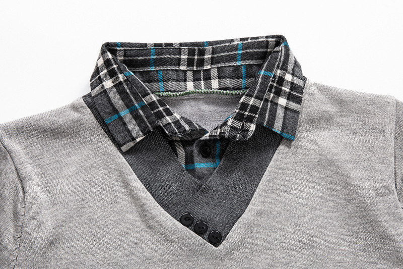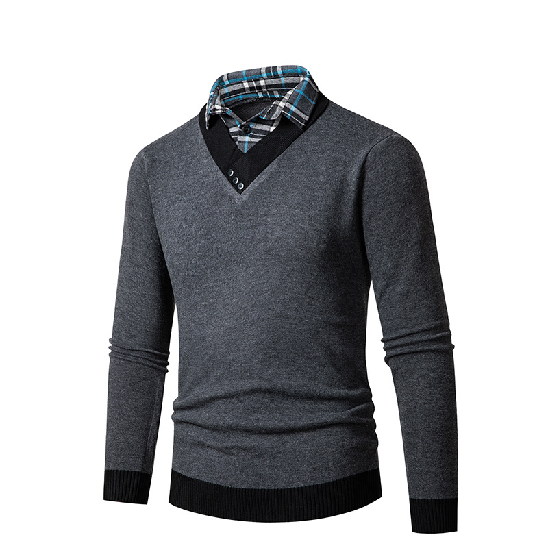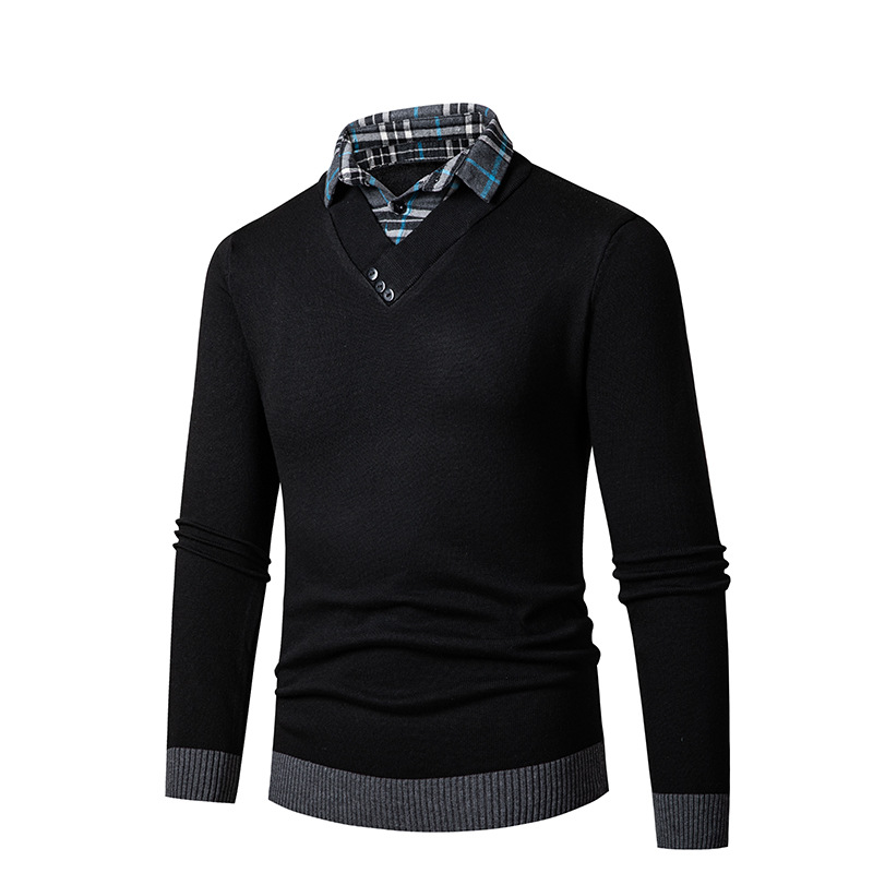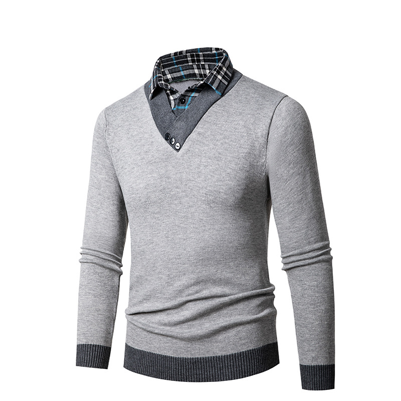 2023 봄 대외 무역 새로운 남성용 3 버튼 가짜 2 피스 스웨터 남성 캐주얼 느슨한 셔츠 칼라 스웨터